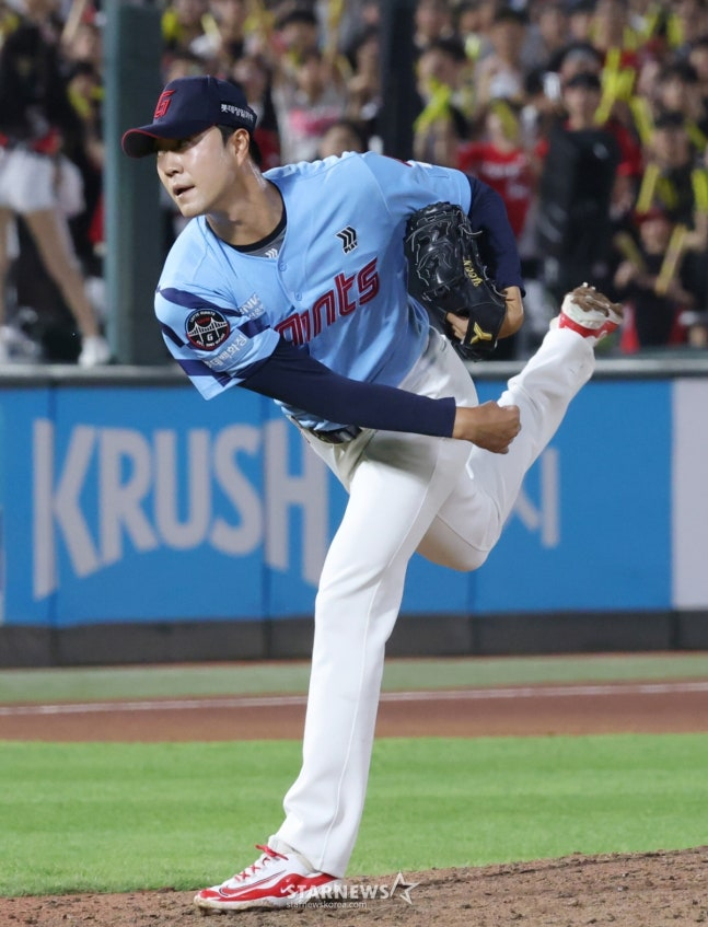 윤성빈은 5일 부산 사직야구장에서 열린 KIA 타이거즈와 2025 신한 SOL 뱅크 KBO 리그 정규시즌 홈경기에서 팀이 0-2로 뒤지던 8회초 마운드에 올랐다.