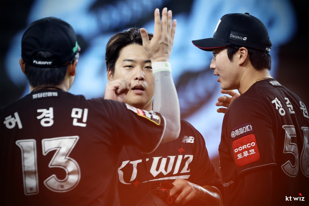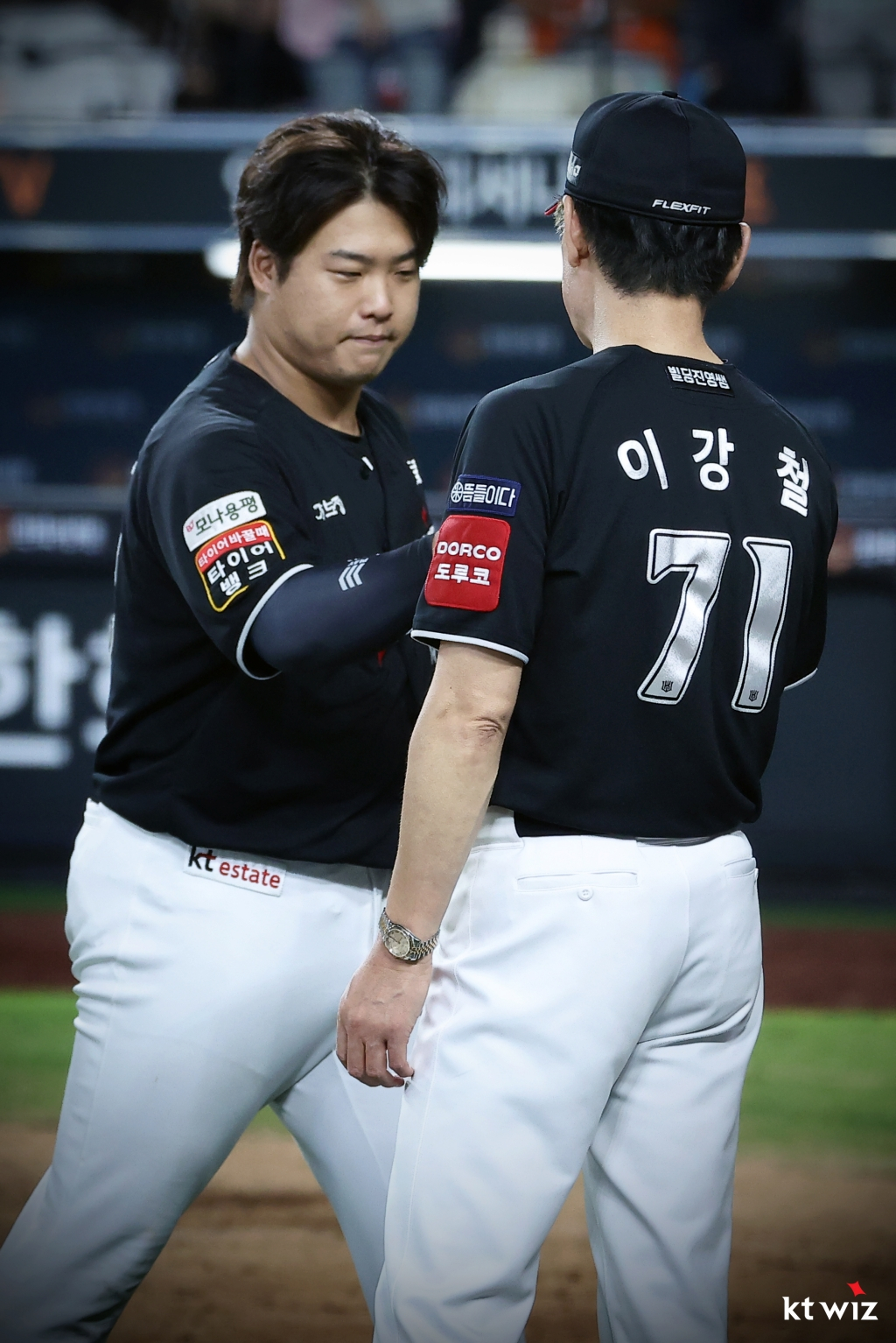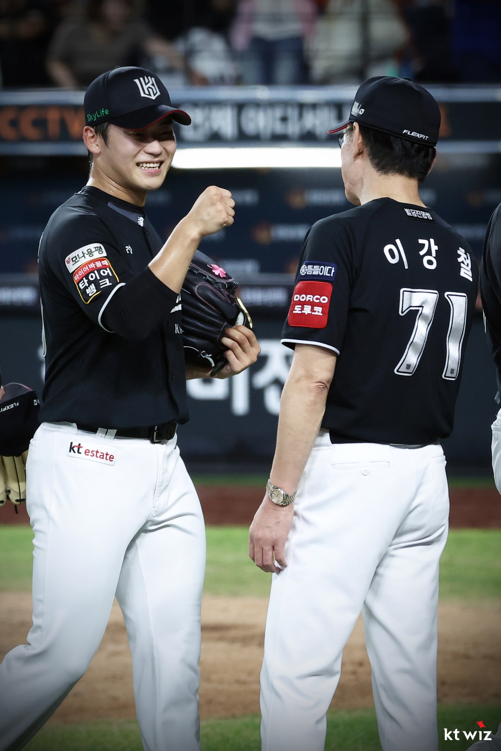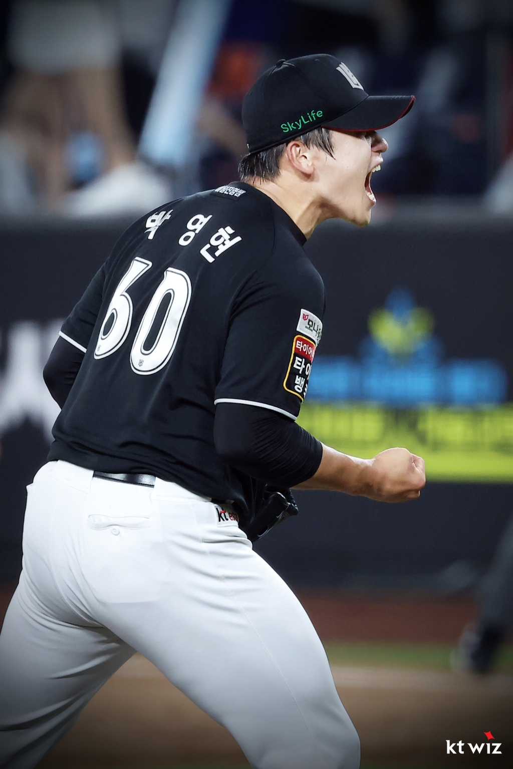9회초 한화는 주현상이 올라왔다. 1사 후 황재균에게 볼넷을 내주자 조동욱으로 교체했다. 장진혁과 안치영을 연속 2루 땅볼로 솎아내며 이닝을 지웠다. 9회말 KT의 투수는 클로저 박영현. 황영묵과 김태연을 연속 삼진 처리한 뒤 리베라토와 문현빈에게 연속 안타를 허용했다. 1, 3루 위기. 다음 타자는 한 방이 있는 노시환. 여기서 결국 박영현이 볼카운트 1-2에서 6구째 슬라이더를 뿌리며 헛스윙 삼진으로 유도, 경기를 승리로 마무리 지었다.