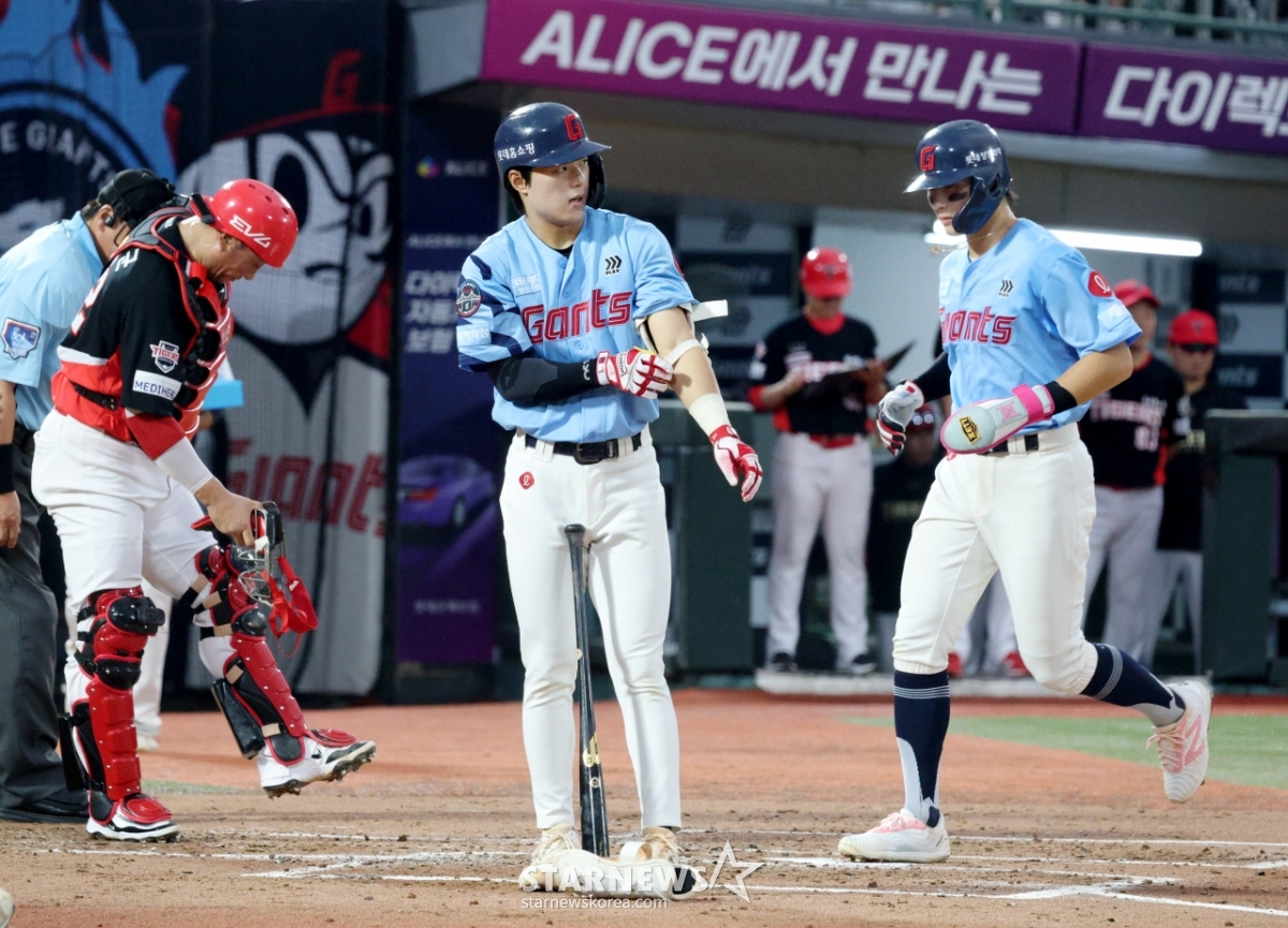 스포츠야구[포토] 한태양 굿아이에 윤동희 역전 득점발행 : 2025.08.06 ・ 19:23부산=김진경 대기자2025 신한 SOL Bank KBO리그 롯데 자이언츠 대 KIA 타이거즈 경기가 6일 부산 사직야구장에서 열렸다.롯데 2회말 1사 만루에서 3루주자 윤동희(오른쪽)가 한태양의 밀어내기 볼넷에 역전 득점하고 있다.<저작권자 © 스타뉴스, 무단전재 및 재배포 금지>프로야구KBO롯데_자이언츠KIA_타이거즈김도영복귀추천 기사김진경 대기자기자홈좋아요 스포츠-야구의 인기 급상승 뉴스스포츠-야구의 최신 뉴스