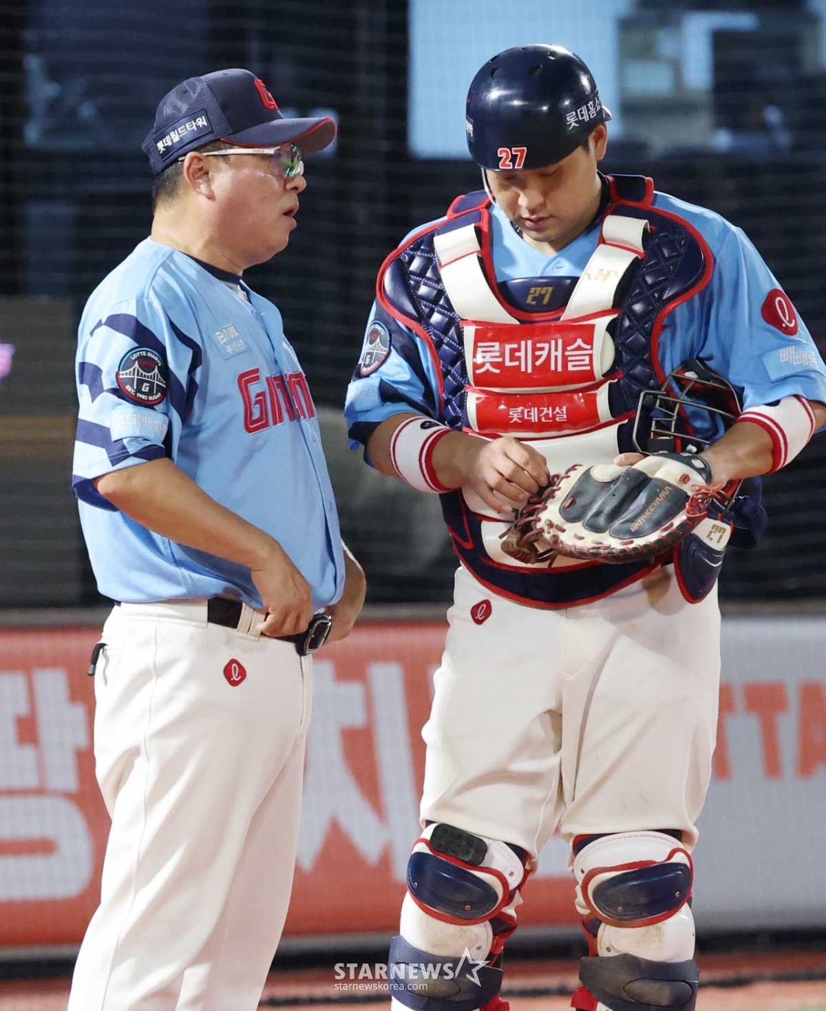 스포츠야구[포토] 유강남에 지시하는 김태형 감독발행 : 2025.08.06 ・ 20:26부산=김진경 대기자2025 신한 SOL Bank KBO리그 롯데 자이언츠 대 KIA 타이거즈 경기가 6일 부산 사직야구장에서 열렸다.롯데 김태형 감독이 5회초 포수 유강남을 불러 작전 지시를 하고 있다.<저작권자 © 스타뉴스, 무단전재 및 재배포 금지>프로야구KBO롯데_자이언츠KIA_타이거즈김도영복귀추천 기사김진경 대기자기자홈좋아요 스포츠-야구의 인기 급상승 뉴스스포츠-야구의 최신 뉴스