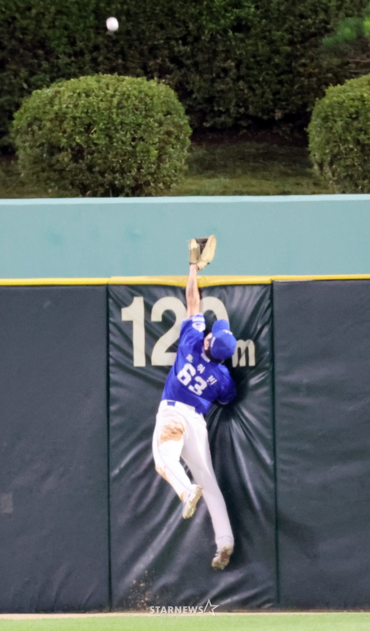 중견수가 펜스플레이를 시도해보지만....어림없었다.