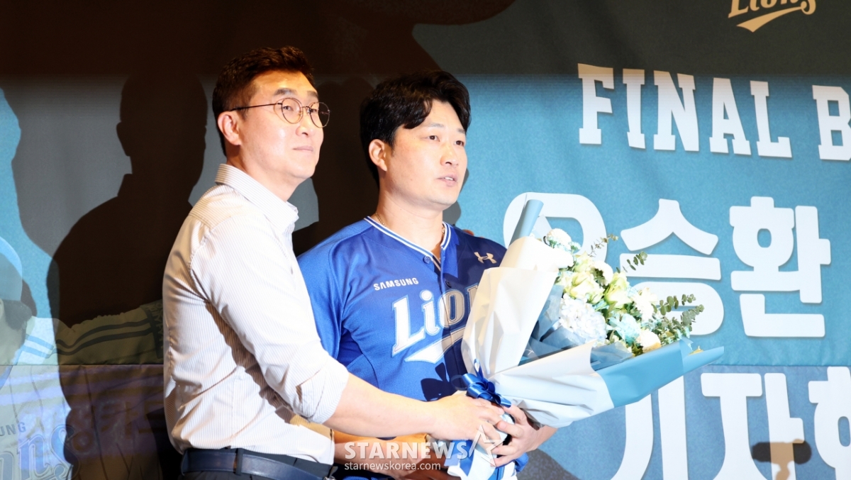 스포츠야구[포토]'은퇴가 축하할 일인지 모르겠지만' 삼성 이종열 단장발행 : 2025.08.07 ・ 14:29인천=강영조 선임기자광고삭제돌직구로 한국프로야구를 호령했던 삼성 오승환이 전격적으로 은퇴를 선언했다. 전날 은퇴발표를 한 오승환이 7일 오후 인천 송도의 오라카이호텔에서 기자회견을 열고 은퇴 소회와 향후 계획에 대해 밝히고 있다. 삼성 이종열 단장이 은퇴를 결심한 오승환에 꽃다발과 삼성의 향후 오승환에 대한 입장을 전하고 있다. 2025.08.07.<저작권자 © 스타뉴스, 무단전재 및 재배포 금지>삼성이종열오승환은퇴단장한국추천 기사강영조 선임기자기자홈좋아요 스포츠-야구의 인기 급상승 뉴스스포츠-야구의 최신 뉴스