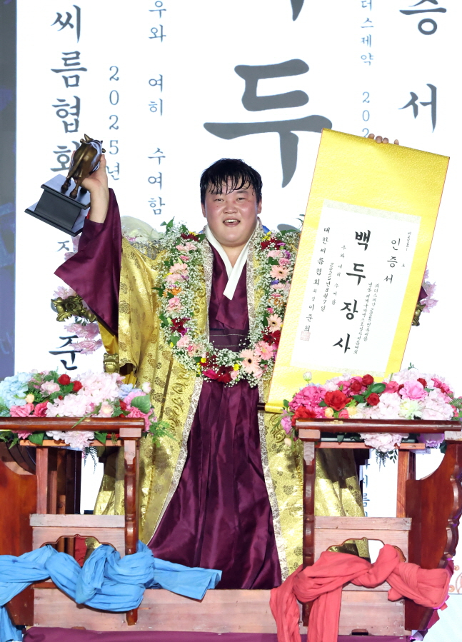 홍지흔(울주구청)이 '위더스제약 2025 민속씨름 영동세계국악엑스포장사씨름대회'에서 생애 첫 백두장사에 등극했다.