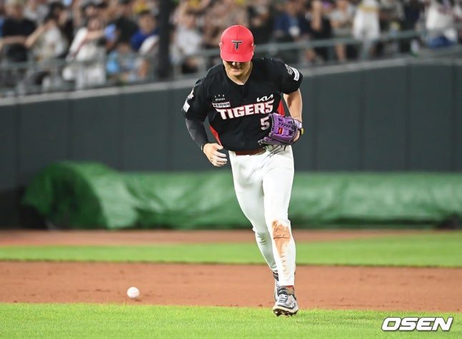 5회가 문제였다. KIA가 6-0으로 앞서고 있는 가운데, 무사 1루 상황에서 롯데 윤동희가 타석에 섰다. 이어 윤동희가 평범한 3루 땅볼을 쳤는데, 김도영이 이를 잡으려다가 놓치며 포구 실책을 범하고 말았다. 김도영이 놓친 공을 다시 잡으려고 하다가 재차 공을 제대로 쥐지 못했다. 문제는 그다음이었다. 김도영이 왼발을 제대로 딛지 못한 채 깨금발을 하며 통증을 느낀 듯 아쉬움 가득한 표정을 지었다.