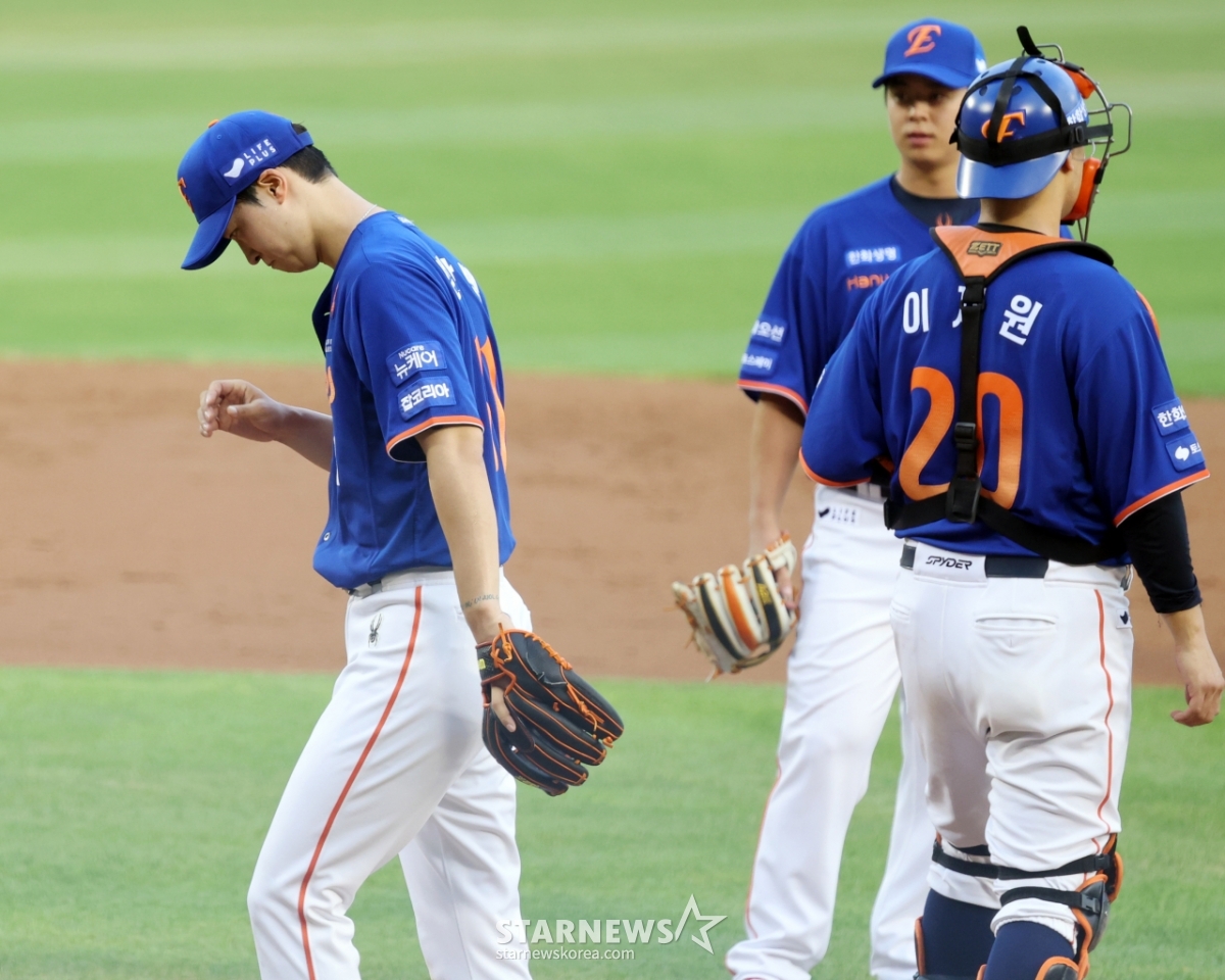 스포츠야구[포토]고개떨군 엄상백발행 : 2025.08.09 ・ 19:53잠실=강영조 선임기자광고삭제한화 선발투수 엄상백이 9일 잠실야구장에서 열린 2025 KBO리그 LG트윈스와 한화이글스 경기 2회말 추가실점하자 강판되고 있다. 1회말 선두타자 신민재와 14구까지 가는 대결 끝에 안타를 내준 엄상백. 출발부터 좋지못했다. 2025.08.09.<저작권자 © 스타뉴스, 무단전재 및 재배포 금지>엄상선발투수잠실야구장트윈스한화이글스신민재추천 기사강영조 선임기자기자홈좋아요 스포츠-야구의 인기 급상승 뉴스스포츠-야구의 최신 뉴스