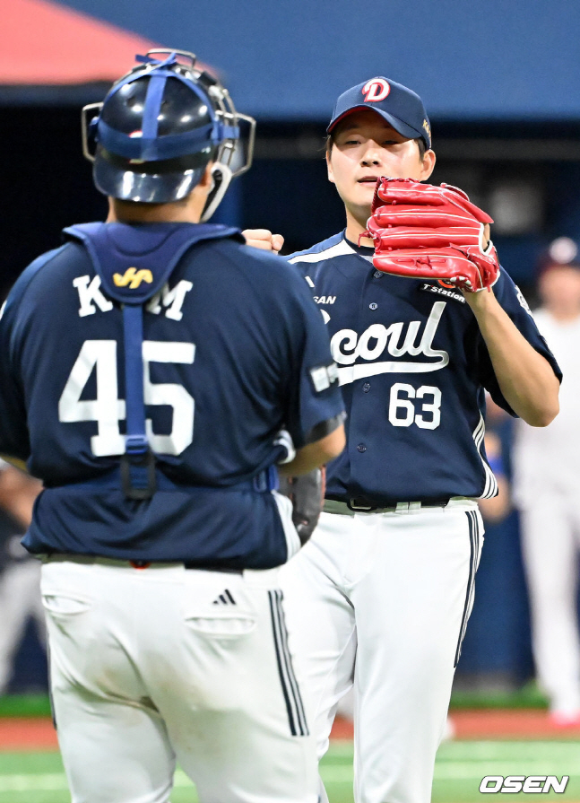 김택연은 "오늘은 구위 자체가 나쁘지 않았기 때문에 자신 있게 던지겠다는 생각만 했다"며 "선두 타자를 잡는 것, 또 초구 스트라이크 잡는 것만 신경 쓰고 있는데 조금씩 좋아지는 느낌이다. 코치님들과 많은 선배들이 자신감 회복에 큰 힘이 돼줬다"고 감사 인사를 전했다.