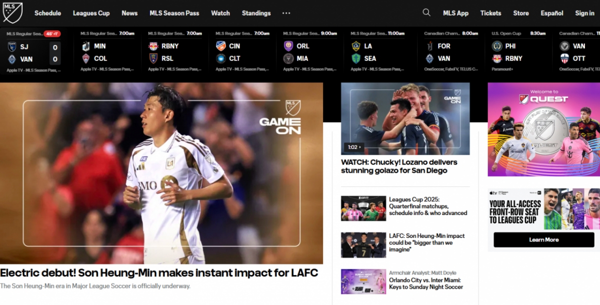 MLS 사무국은 10일(한국시간) 미국 일리노이주 브리지뷰의 시트긱 스타디움에서 열린 시카고 파이어와 LAFC의 2025 MLS 27라운드 2-2 무승부 직후 홈페이지 메인 기사에 "일렉트릭 데뷔! 손흥민이 LAFC 데뷔전부터 영향력을 발휘했다"고 전했다.