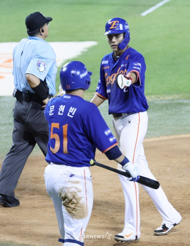 5회초에도 한화는 선두타자 최재훈이 볼넷을 얻어냈고 하주석이 희생 번트로 1사 2루 득점권 기회를 잡았다. 여기서 손아섭이 우익선상 적시 2루타로 최재훈을 홈으로 불러들였다. 한화가 2-0으로 도망갔다.