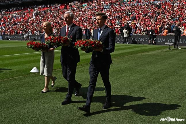 리버풀의 전설적인 공격수 이안 러시와 스티브 패리시 팰리스 회장, 데이빗 휴잇 잉글랜드축구협회(FA)장이 헌화했다. 팬들은 조타의 영정사진이 웸블리 스타디움의 대형 스크린에 나타나자 기립박수로 존경을 표했다.