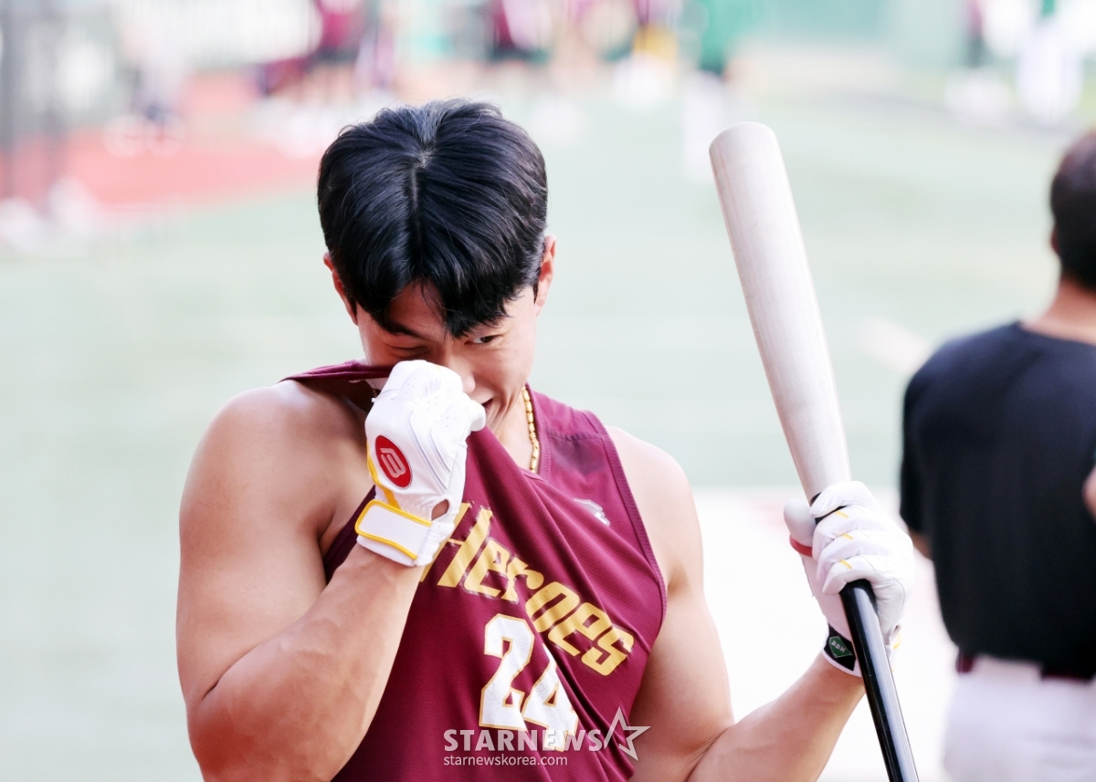 '120억 다년계약'으로 야구팬들을 놀라게 했던 키움의 간판타자 송성문이 20-20클럽에 홈런 1개, 도루 1개만을 남겨두며 올시즌 처음으로 '20-20클럽 오프닝'에 도전하고 있다. 12일 인천SSG랜더스필드에서 열리는 키움히어로즈와 SSG랜더스 경기에 앞서 공 하나하나에 집중하는 모습, 무더위에도 미소를 잃지않는 얼굴에서 그의 도전이 곧 이루어질것을 예감한다. 2025.08.12.