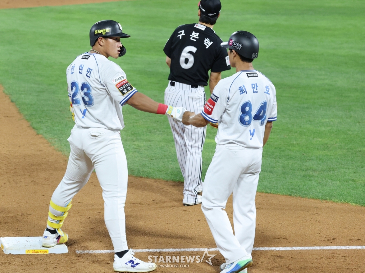 스포츠야구[포토] 3루타 안현민 '빚지곤 몬산다'발행 : 2025.08.12 ・ 20:49수원=김진경 대기자2025 신한 SOL Bank KBO리그 kt 위즈 대 LG 트윈스 경기가 12일 수원 KT위즈파크에서 열렸다.KT 안현민이 7회말 2사에서 중월 3루타를 날리고 출루한 후 최만호 코치의 환영을 받고 있다.<저작권자 © 스타뉴스, 무단전재 및 재배포 금지>프로야구KBOLG_트윈스손주영시구승요추천 기사김진경 대기자기자홈좋아요 스포츠-야구의 인기 급상승 뉴스스포츠-야구의 최신 뉴스