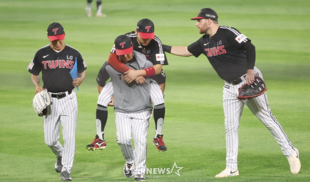 스포츠야구[포토] 박해민 '오서방 고마워'발행 : 2025.08.12 ・ 21:13수원=김진경 대기자2025 신한 SOL Bank KBO리그 kt 위즈 대 LG 트윈스 경기가 12일 수원 KT위즈파크에서 열렸다.LG 중견수 박해민이 8회말 2사 1,2루에서 KT 오윤석 타구를 수비하다 부상을 입고 교체되고 있다.<저작권자 © 스타뉴스, 무단전재 및 재배포 금지>프로야구KBOLG_트윈스손주영시구승요추천 기사김진경 대기자기자홈좋아요 스포츠-야구의 인기 급상승 뉴스스포츠-야구의 최신 뉴스