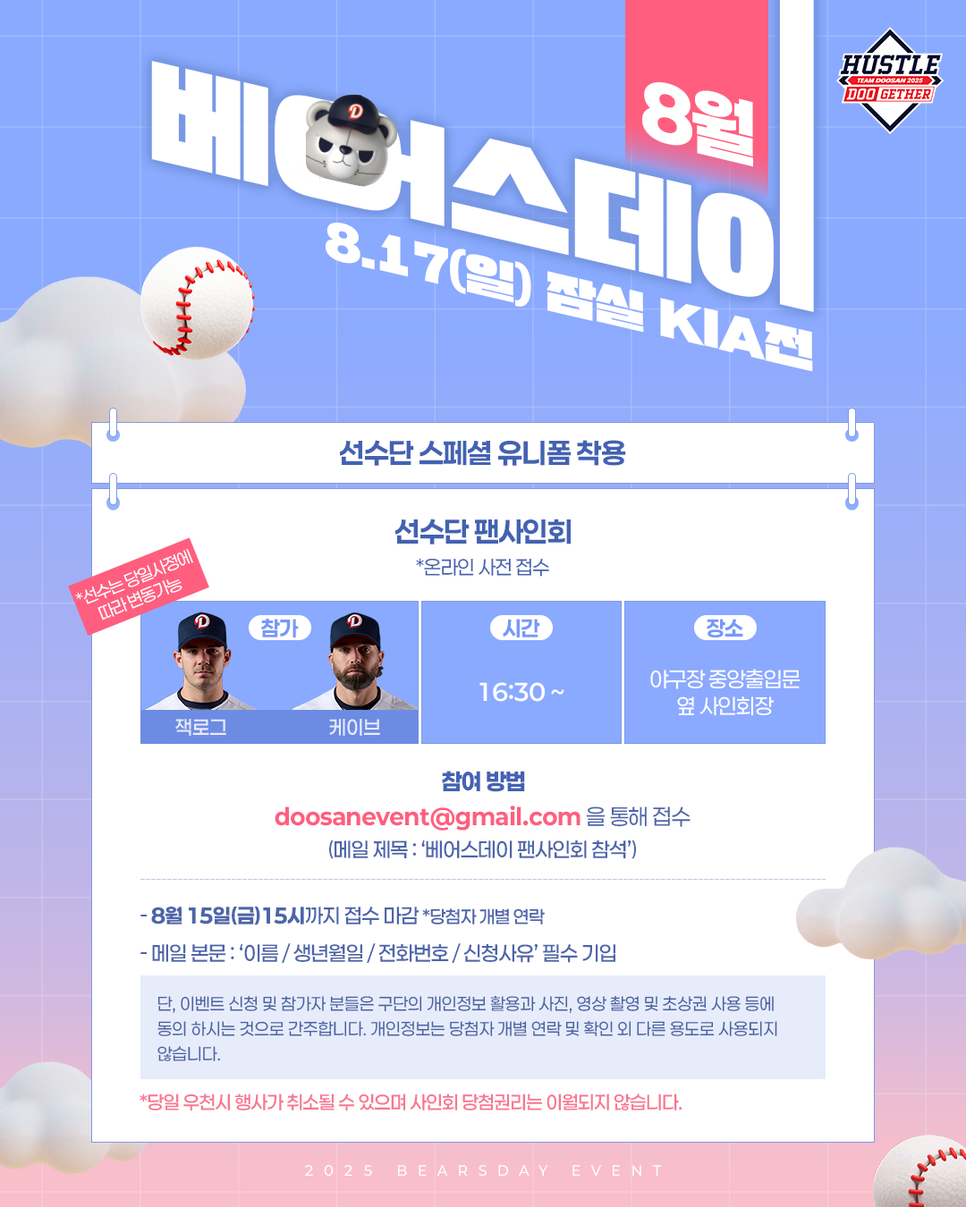 자세한 내용은 두산 베어스 공식 홈페이지와 소셜미디어 채널을 통해 확인할 수 있다.