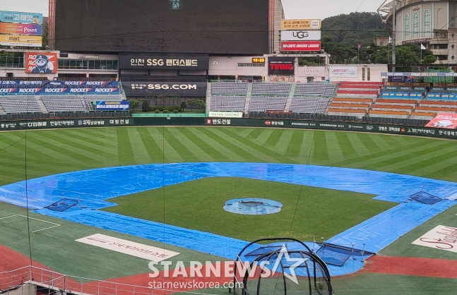 인천 경기에선 이미 많은 비가 쏟아졌고 경기가 열릴 오후 7시엔 시간당 10㎜, 이후엔 낙뢰까지 예보돼 있어 경기 진행이 어려울 것으로 판단했다.