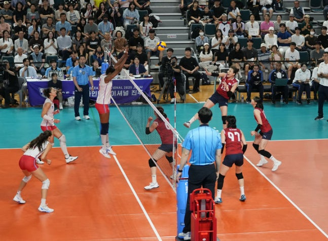 한국 여자배구가 국내 팬들 앞에서 열린 국제대회 두 번째 경기에서 아쉽게 패했다.