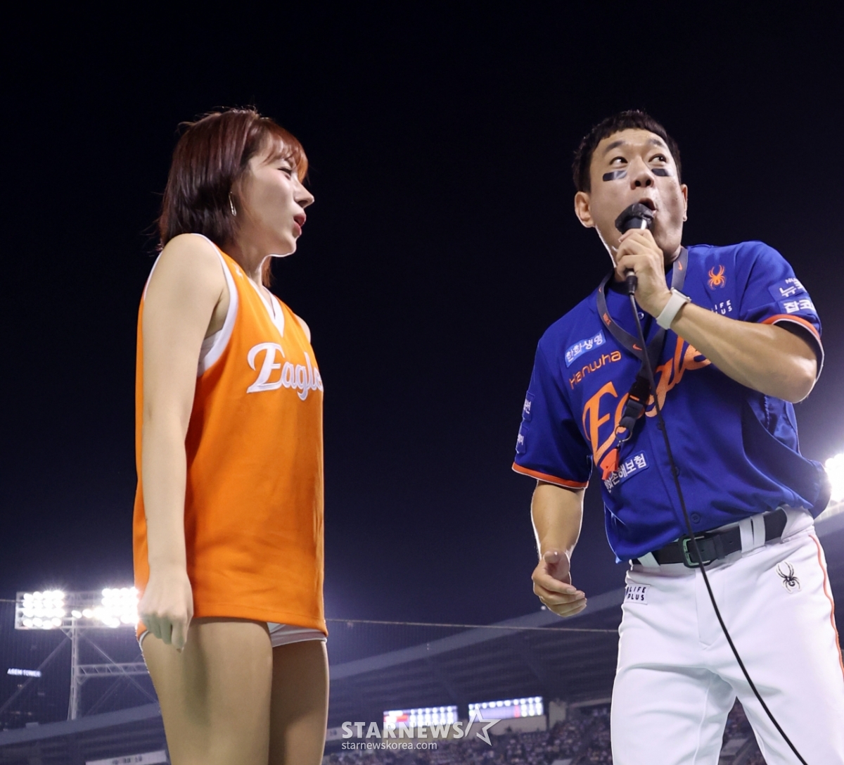 NC에서 전격적으로 한화로 이적한 손아섭이 야구팬들의 큰 관심사가 된 가운데 LG전 선발출전한 손아섭이 타석에 들어선 순간. 한화응원단장 홍창화는 응원가를 시작하기위해 시동을 걸었습니다. 하지원의 입에서 오빠가 나오기를 기대하며 마이크를 건넸더니 나온 답은 '손아섭'이었습니다. 당황한 응원단장....