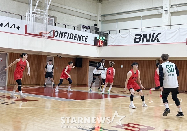 '디펜딩 챔피언' 부산 BNK 썸이 본격적인 실전 경험을 쌓아가고 있다. 처음으로 여자 팀과 맞붙으면서 다시 코트 적응에 나서고 있다.