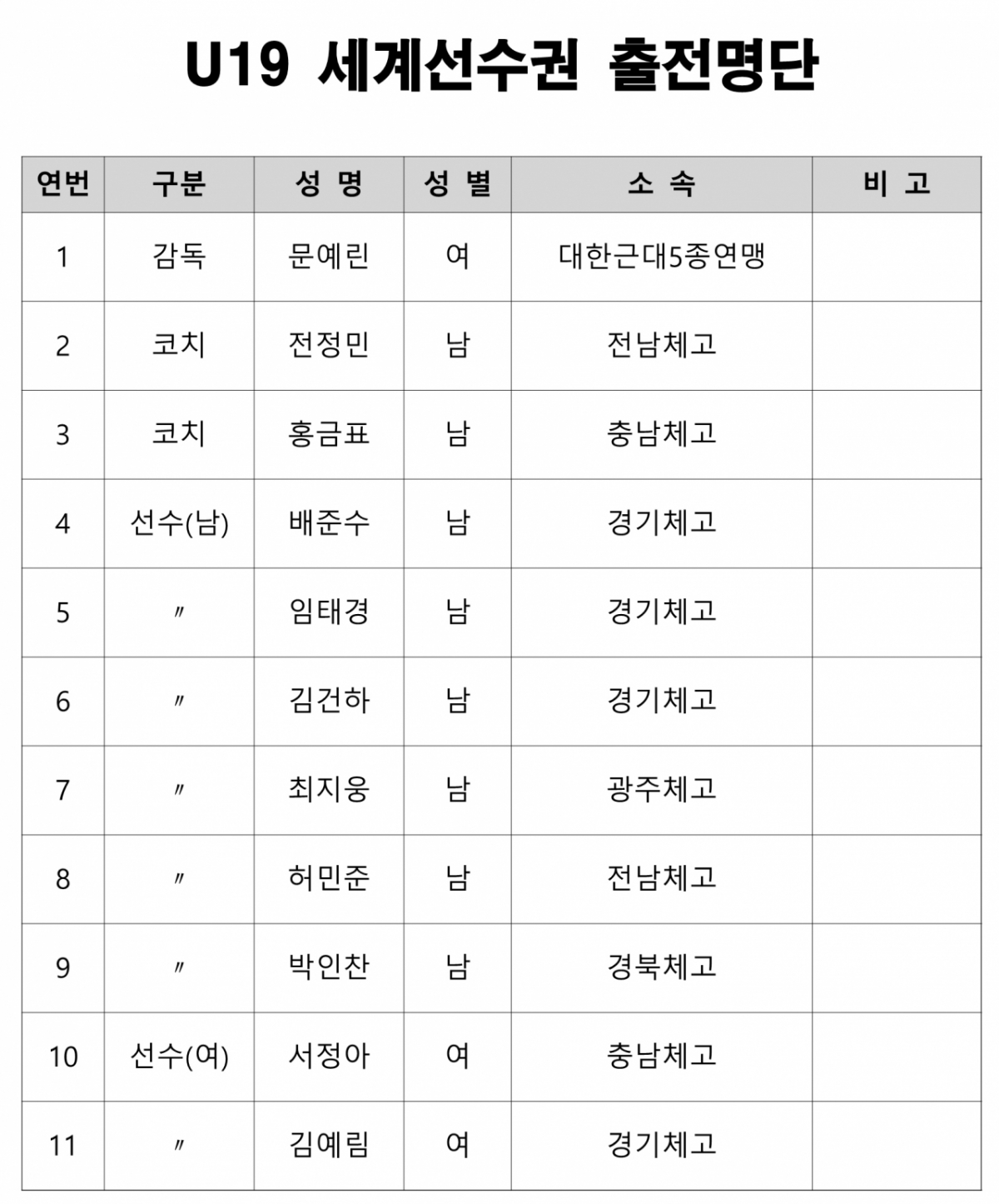 대한민국 19세 이하(U-19) 근대5종 국가대표팀이 오는 20일부터 23일까지 리투아니아 드루스키닌카이에서 열리는 2025 국제근대5종연맹(UIPM) U-19 세계선수권대회에 출전한다. 이 대회는 수영, 펜싱, 장애물, 레이저런(육상+사격) 등 다섯 종목의 종합 실력을 겨루는 청소년 최고 권위의 무대다.