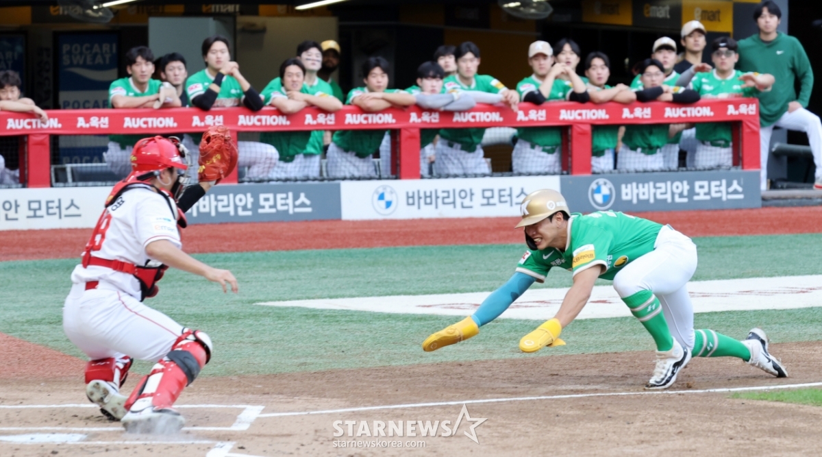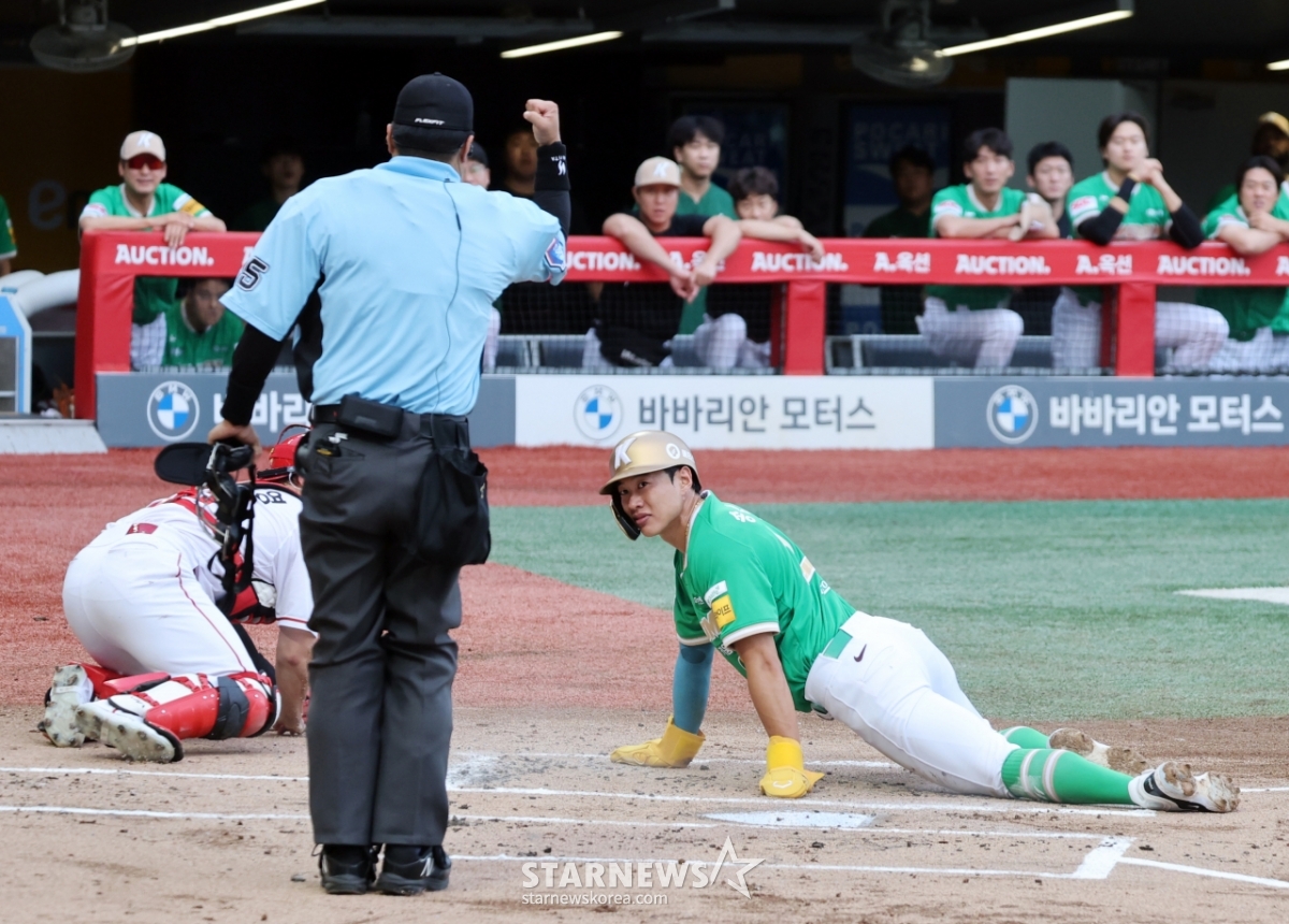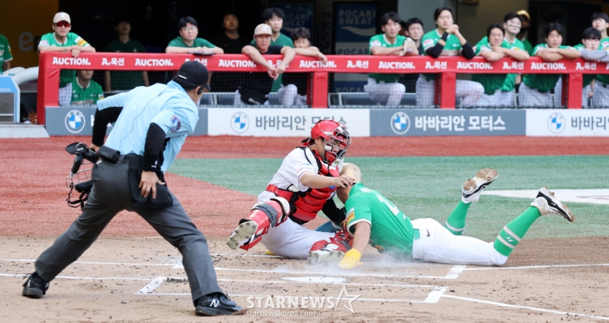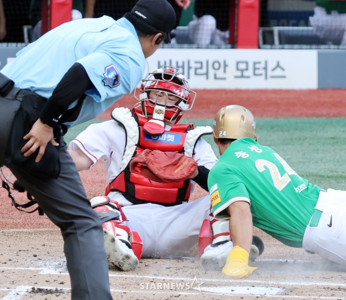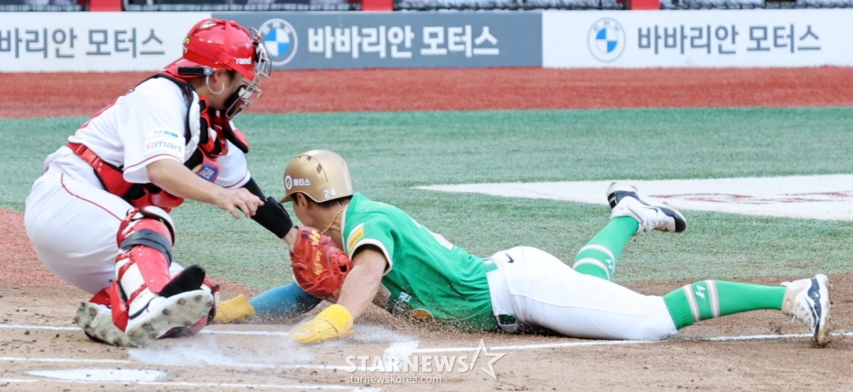 스포츠야구[한번에쓱]'타구가 너무 빨랐나?' 홈에서 아웃되는 송성문발행 : 2025.08.14 ・ 19:13수정 : 2025.08.15 ・ 03:28인천=강영조 선임기자키움 송성문이 14일 인천SSG랜더스필드에서 열린 2025 KBO리그 SSG랜더스와 키움히어로즈 경기1회초 1사 2,3루 4번타자 카디네스유격수땅볼때 홈으로 뛰었으나 포수 이지영에 태그아웃당하고 있다. 2025.08.14.땅볼타구를 잡자마자 홈으로 송구하는 박성한공은 이미 이지영 글러브에'피할수 없는 태그'암오케이^^<저작권자 © 스타뉴스, 무단전재 및 재배포 금지>송성문랜더스이지영아웃인천히어로즈추천 기사강영조 선임기자기자홈좋아요 스포츠-야구의 인기 급상승 뉴스스포츠-야구의 최신 뉴스
