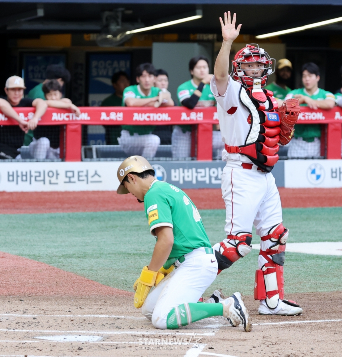 스포츠야구[포토]'난 괜찮아!' 이지영발행 : 2025.08.14 ・ 19:15수정 : 2025.08.15 ・ 03:30인천=강영조 선임기자키움 송성문이 14일 인천SSG랜더스필드에서 열린 2025 KBO리그 SSG랜더스와 키움히어로즈 경기1회초 1사 2,3루 4번타자 카디네스 유격수 땅볼 때 홈으로 쇄도했으나 포수 이지영에 태그아웃당하고 있다. 2025.08.14.<저작권자 © 스타뉴스, 무단전재 및 재배포 금지>브리핑요약 없이도 가볍게 읽으실 수 있는 짧은 뉴스입니다.추천 기사강영조 선임기자기자홈좋아요스포츠-야구의 인기 급상승 뉴스스포츠-야구의 최신 뉴스