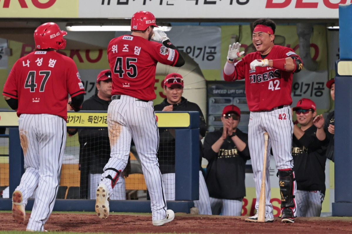 KIA는 14일 대구 삼성라이온즈파크에서 펼쳐진 삼성 라이온즈와 2025 신한 SOL 뱅크 KBO 리그 정규시즌 원정 경기에서 10-4 완승을 거뒀다. KIA는 53승 4무 50패를 마크하며 리그 5위에 자리했다. 리그 4위 SSG 랜더스(54승 4무 50패)와 승차는 0.5경기. 리그 3위 롯데 자이언츠(58승 3무 51패)와 승차는 2경기다.