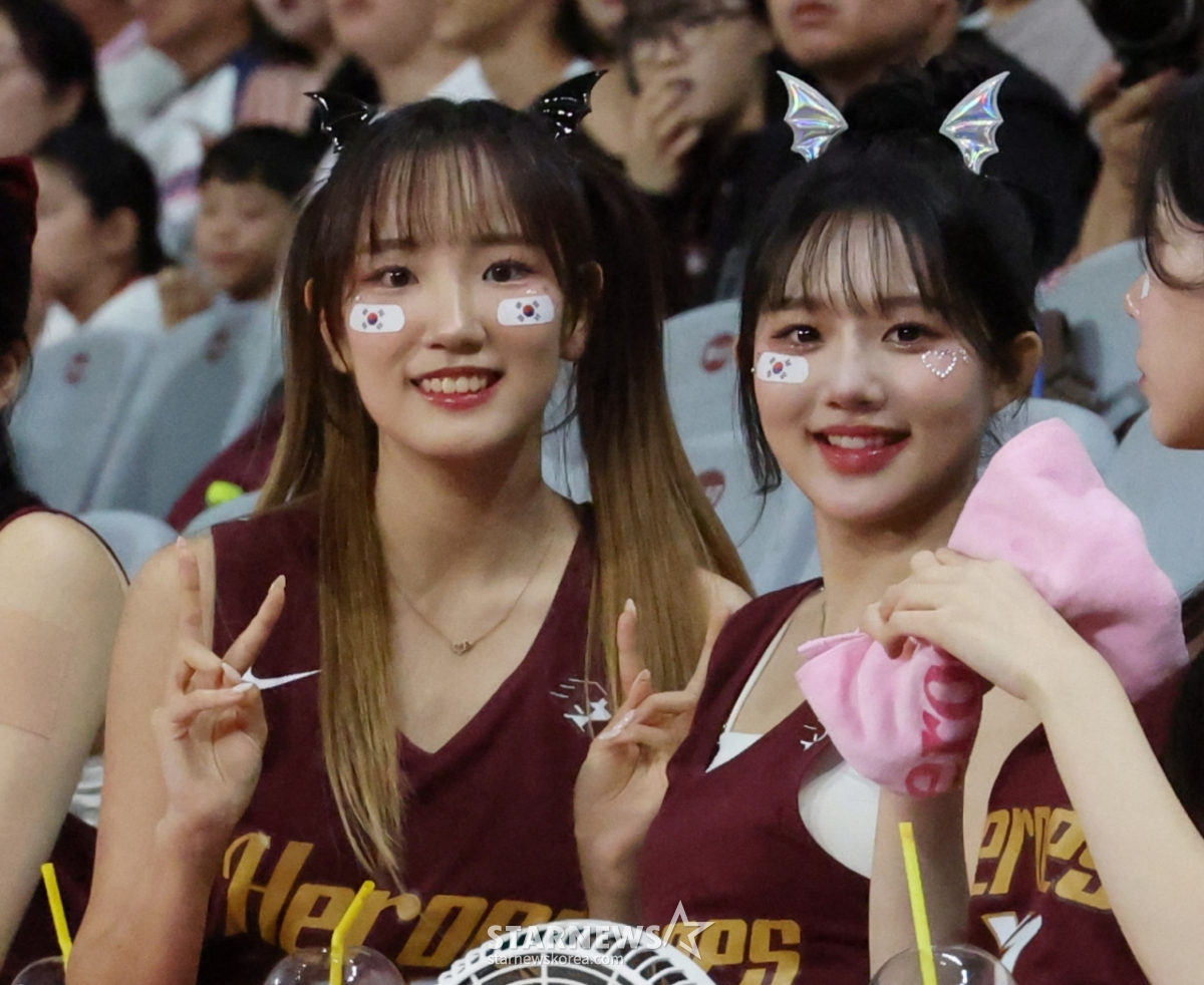 스포츠야구[포토] 차예나-강수경 '광복절 태극전사'발행 : 2025.08.15 ・ 19:56고척=김진경 대기자2025 신한 SOL Bank KBO리그키움 히어로즈 대 kt 위즈 경기가 15일 서울 고척스카이돔에서 열렸다.키움 치어리더 차예나와 강수경이 태극 스티커 응원을 펼치고 있다.<저작권자 © 스타뉴스, 무단전재 및 재배포 금지>브리핑요약 없이도 가볍게 읽으실 수 있는 짧은 뉴스입니다.추천 기사김진경 대기자기자홈좋아요스포츠-야구의 인기 급상승 뉴스스포츠-야구의 최신 뉴스