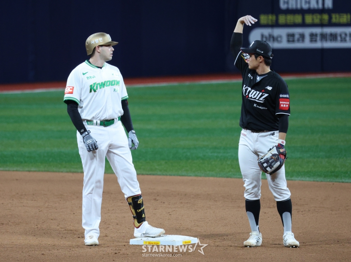 스포츠야구[포토] 역전타 카디네스 '환호 스킵, 안현민 다쳤어'발행 : 2025.08.15 ・ 22:54고척=김진경 대기자2025 신한 SOL Bank KBO리그키움 히어로즈 대 kt 위즈 경기가 15일 서울 고척스카이돔에서 열렸다.키움 카디네스가 8회말 1사 2루에서 역전 1타점 우전 안타를 치고 KT 우익수 안현민의 실책에 2루까지 진루한 후 부상을 당한 안현민을 바라보고 있다.<저작권자 © 스타뉴스, 무단전재 및 재배포 금지>브리핑요약 없이도 가볍게 읽으실 수 있는 짧은 뉴스입니다.추천 기사김진경 대기자기자홈좋아요스포츠-야구의 인기 급상승 뉴스스포츠-야구의 최신 뉴스