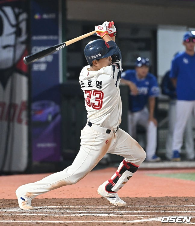 하지만 앞선 세 타석에서 2개의 삼진을 당했던 김영웅이 삼성의 히어로로 등극했다. 김원중과 풀카운트 끈질긴 승부를 펼친 김영웅은 8구째 포크볼이 스트라이크존 낮게 들어오자 그대로 끌어당겼고, 오른쪽 폴대 안쪽으로 타구가 들어가면서 홈런이 됐다. 그랜드슬램이 되는 순간이었다. 김영웅의 개인 3번째 만루포로 삼성은 7-7 동점을 만들었다.