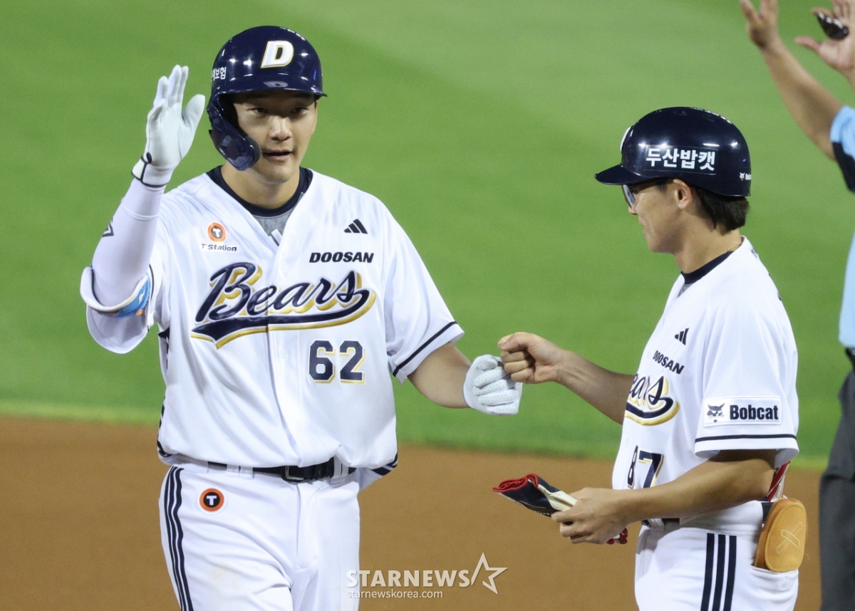 스포츠야구[포토] 안재석 '추격해볼까'발행 : 2025.08.17 ・ 20:26잠실=김진경 대기자광고삭제2025 신한 SOL Bank KBO리그 두산 베어스 대 KIA 타이거즈 경기가 17일 서울 잠실야구장에서 열렸다.두산 안재석이 6회말 1사에서 우전 안타로 출루한 후 세리머니를 하고 있다.<저작권자 © 스타뉴스, 무단전재 및 재배포 금지>프로야구KBO시구승요승리요정치어리더추천 기사김진경 대기자기자홈좋아요 스포츠-야구의 인기 급상승 뉴스스포츠-야구의 최신 뉴스