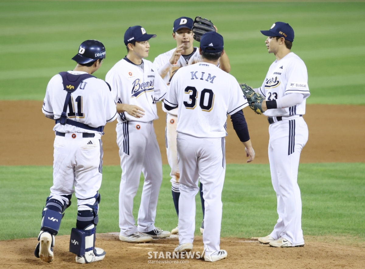 스포츠야구[포토] 강승호 '얼마 만에 4연승이더냐'발행 : 2025.08.17 ・ 21:22조회수 :잠실=김진경 대기자2025 신한 SOL Bank KBO리그 두산 베어스 대 KIA 타이거즈 경기가 17일 서울 잠실야구장에서 열렸다.강승호를 비롯한 두산 선수들이 KIA에 4-0으로 승리하며 4연승한 후 마운드에 모여 기쁨을 나누고 있다.<저작권자 © 스타뉴스, 무단전재 및 재배포 금지>브리핑추천 기사김진경 대기자기자홈좋아요스포츠-야구의 인기 급상승 뉴스스포츠-야구의 최신 뉴스AD