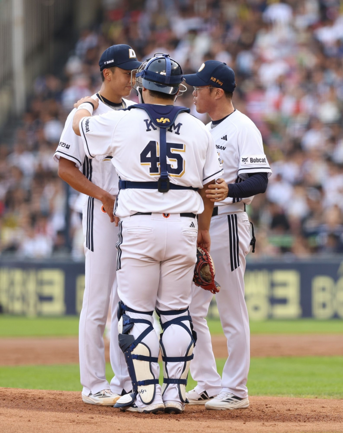 이때 조성환 두산 감독대행이 움직였다. 직접 마운드에 올라온 것. 스타뉴스 취재 결과 이때 조 대행은 제환유를 향해 "떨려? 다리 느낌 있어?"라고 웃으며 물어봤다. 제환유가 "괜찮습니다"라고 답하자, 조 대행은 "그럼 자신 있게 던져. 네 공 좋아. 네 공이 제일 좋아서 오늘 선발이야"라고 말하며 독려한 뒤 더그아웃으로 돌아갔다. 제환유는 곧바로 오선우를 2루 땅볼 처리하며 만루 위기를 추가 실점 없이 넘겼다.