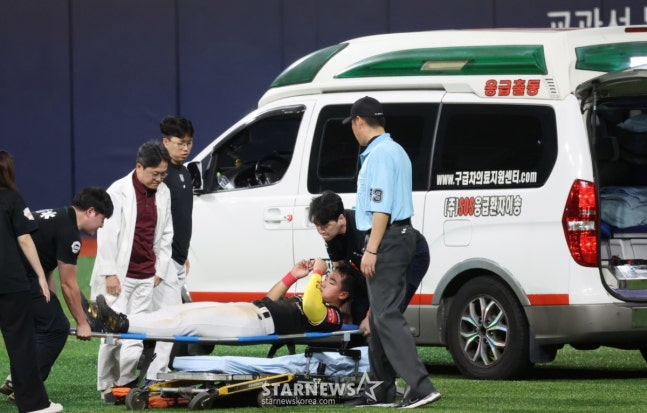 안현민은 지난 15일 열린 키움 히어로즈전 8회말 1사 1루 상황에서 루벤 카디네스의 타구를 잡는 과정에서 넘어져 고통을 호소했다. 한동안 일어나지 못한 안현민은 결국 구급차에 실려 병원으로 이동했다.
