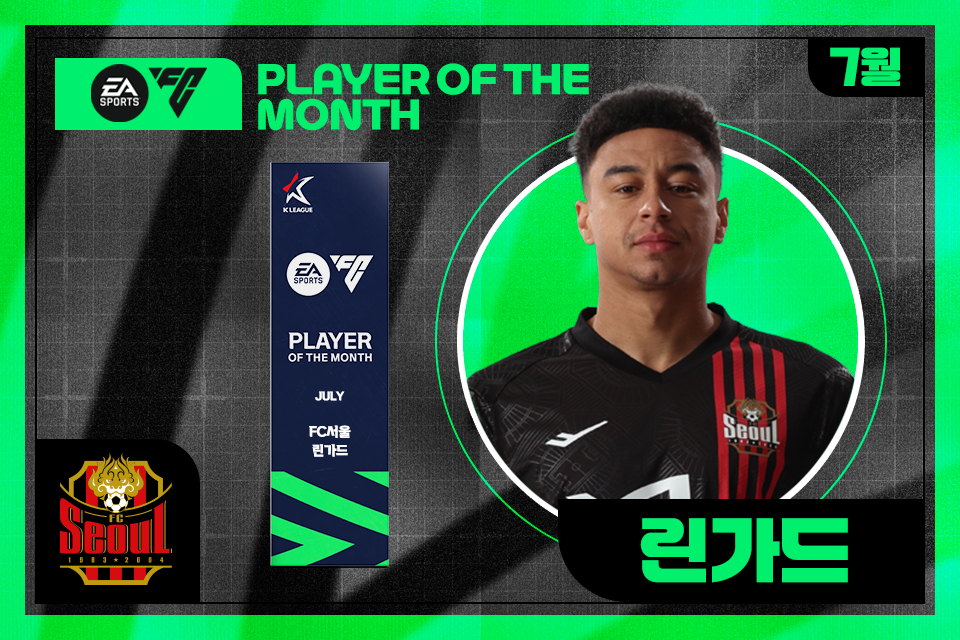 이에 힘입어 린가드는 7월 한 달 동안 라운드 MVP 1회, 라운드 베스트11 2회, 경기 MOM에 2회 선정되며 서울 공격진의 핵심으로서 활약을 이어갔다.