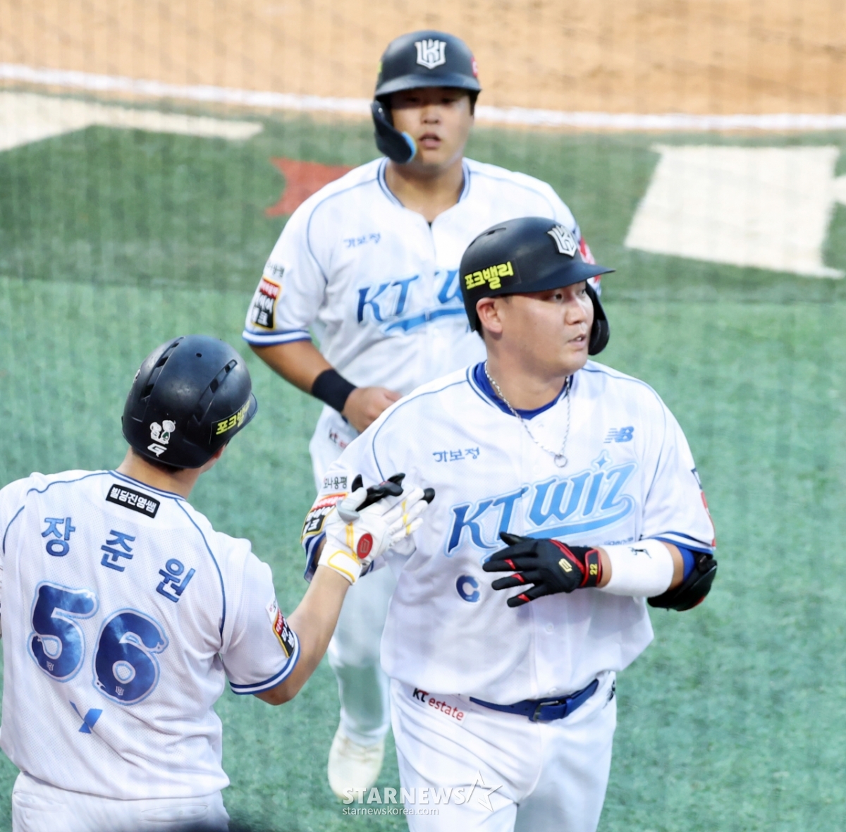 스포츠야구[한번에쓱]김광현 상대로 '선제 투런포 쏘아올린' 장성우발행 : 2025.08.19 ・ 19:52수원=강영조 선임기자광고삭제KT 6번타자 장성우가 19일 수원KT위즈파크에 열린 2025KBO리그 KT위즈와 SSG랜더스 경기 2회말 1사 1루에서 김광현을 상대로 중월 선제2점홈런을 터트린 후 홈인하고 있다. 2025.08.19.<저작권자 © 스타뉴스, 무단전재 및 재배포 금지>김광현장성우위즈상대선제수원추천 기사강영조 선임기자기자홈좋아요 스포츠-야구의 인기 급상승 뉴스스포츠-야구의 최신 뉴스