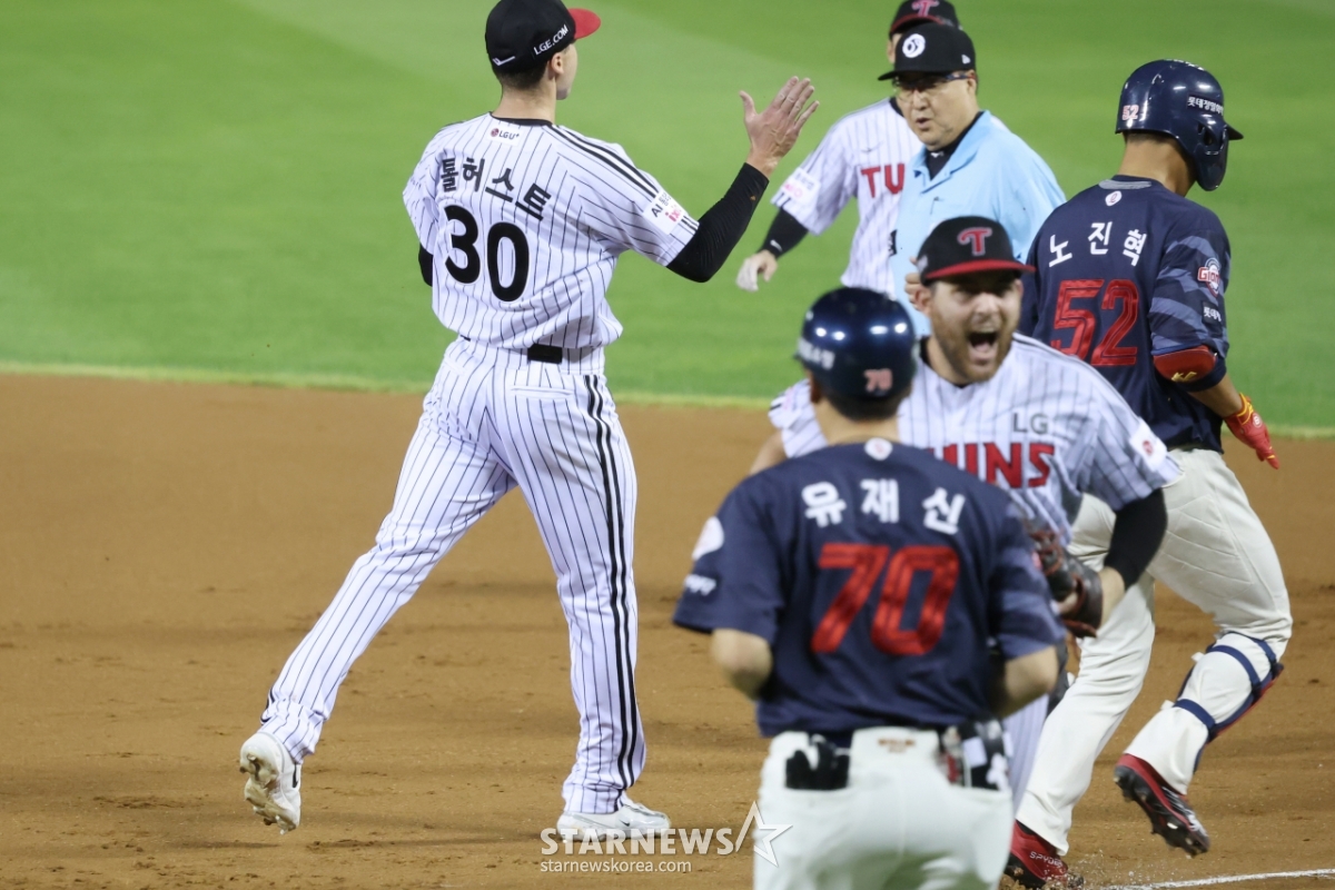 스포츠야구[포토] 톨허스트 '오서방이 더 좋아하네'발행 : 2025.08.19 ・ 20:43수정 : 2025.08.19 ・ 20:50잠실=김진경 대기자광고삭제2025 신한 SOL Bank KBO리그 LG 트윈스 대 롯데 자이언츠 경기가 19일 서울 잠실야구장에서 열렸다.LG 선발 톨허스트가 6회초 2사 만루에서 롯데 노진혁을 1루 땅볼로 잡으며 위기를 지운 후 기뻐하고 있다.<저작권자 © 스타뉴스, 무단전재 및 재배포 금지>프로야구KBO시구승요승리요정치어리더추천 기사김진경 대기자기자홈좋아요 스포츠-야구의 인기 급상승 뉴스스포츠-야구의 최신 뉴스