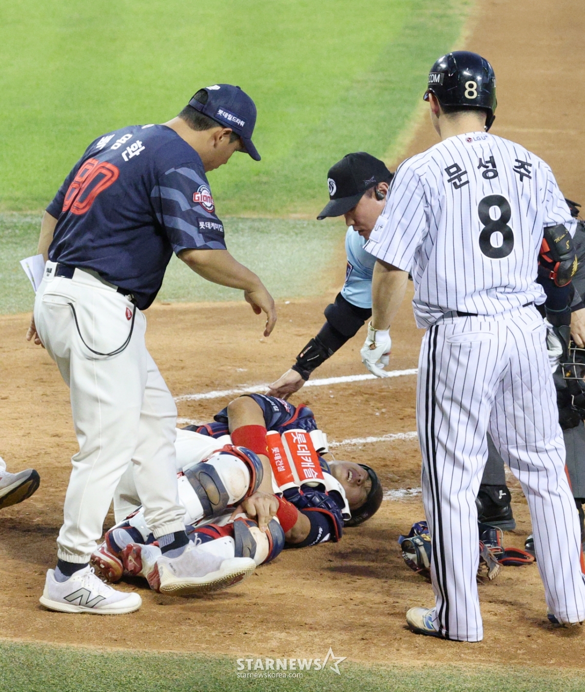스포츠야구[포토] 파울볼 맞고 고통 호소하는 유강남발행 : 2025.08.19 ・ 21:01잠실=김진경 대기자2025 신한 SOL Bank KBO리그 LG 트윈스 대 롯데 자이언츠 경기가 19일 서울 잠실야구장에서 열렸다.롯데 포수 유강남이 3회말 2사에서 LG 문성주의 파울 팁에 맞고 고통스러워하고 있다.<저작권자 © 스타뉴스, 무단전재 및 재배포 금지>프로야구KBO시구승요승리요정치어리더추천 기사김진경 대기자기자홈좋아요 스포츠-야구의 인기 급상승 뉴스스포츠-야구의 최신 뉴스