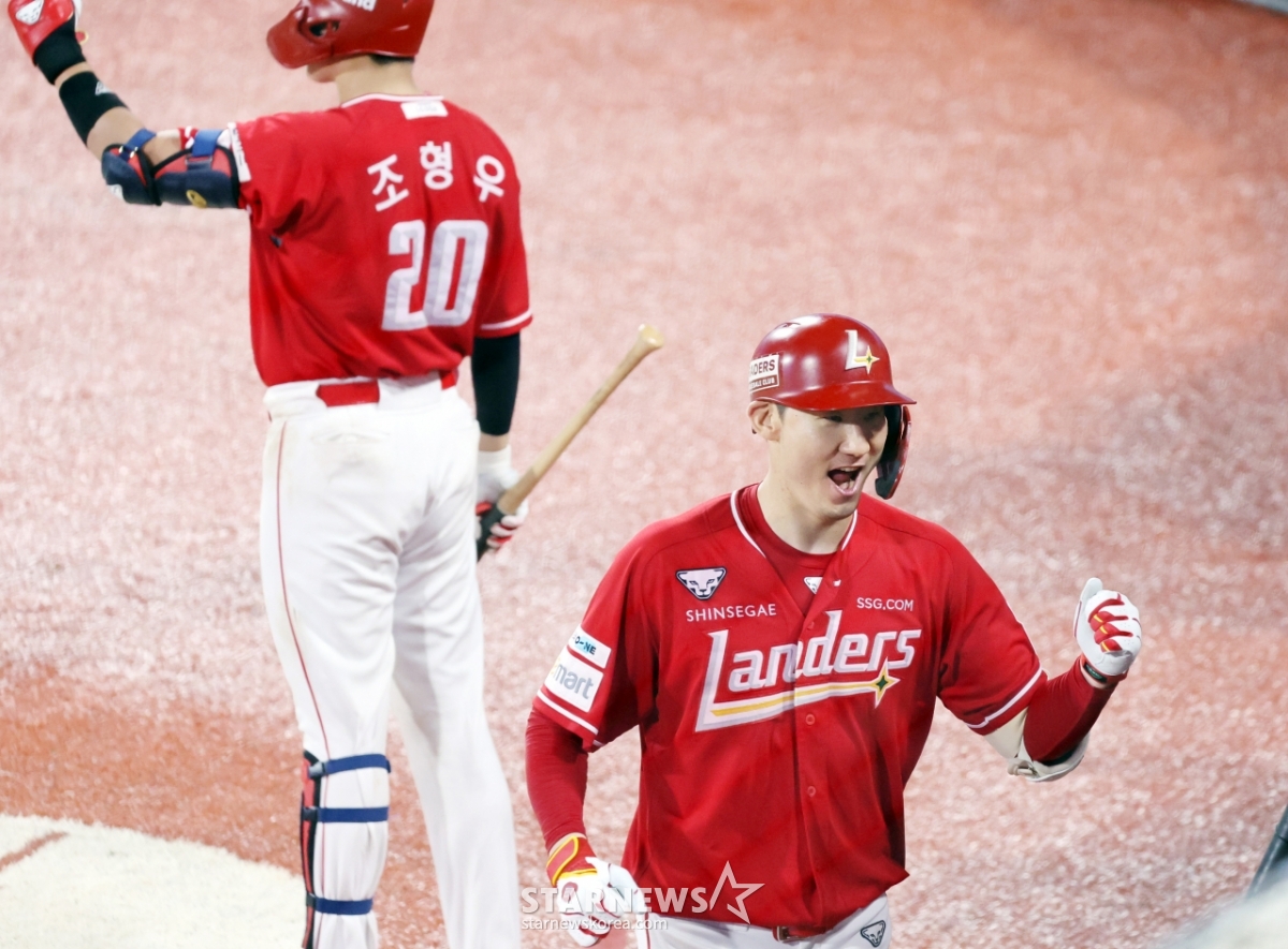 스포츠야구[한번에쓱]'8회초 KT의 리드를 지우는 3점홈런' 오태곤이 쐈다!발행 : 2025.08.19 ・ 21:13수원=강영조 선임기자SSG 8번타자 오태곤이 19일 수원KT위즈파크에 열린 2025KBO리그 KT위즈와 SSG랜더스 경기 8회초 2사 1,2루에서 손동현을 상대로 좌월 3점 동점홈런을 터트린 후 홈인하고 있다. 4-4 동점을 만든 SSG.2025.08.19.<저작권자 © 스타뉴스, 무단전재 및 재배포 금지>브리핑요약 없이도 가볍게 읽으실 수 있는 짧은 뉴스입니다.추천 기사강영조 선임기자기자홈좋아요스포츠-야구의 인기 급상승 뉴스스포츠-야구의 최신 뉴스