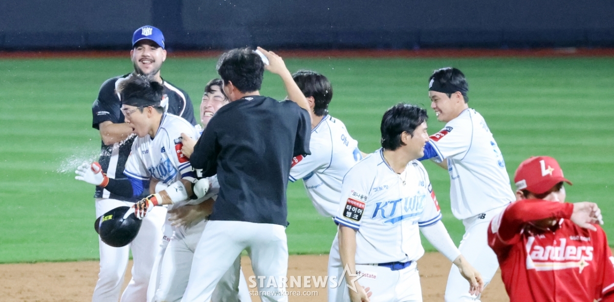 스포츠야구[포토]'이게 야구지!' 9회말 끝내기 안타 허경민발행 : 2025.08.19 ・ 21:52수원=강영조 선임기자광고삭제KT 1번타자 허경민이 19일 수원KT위즈파크에 열린 2025KBO리그 KT위즈와 SSG랜더스 경기 9회말 무사 2루에서 끝내기 안타를 터트린 후 동료들과 환호하며 자축하고 있다.2025.08.19.<저작권자 © 스타뉴스, 무단전재 및 재배포 금지>내기허경민위즈안타수원랜더스추천 기사강영조 선임기자기자홈좋아요 스포츠-야구의 인기 급상승 뉴스스포츠-야구의 최신 뉴스