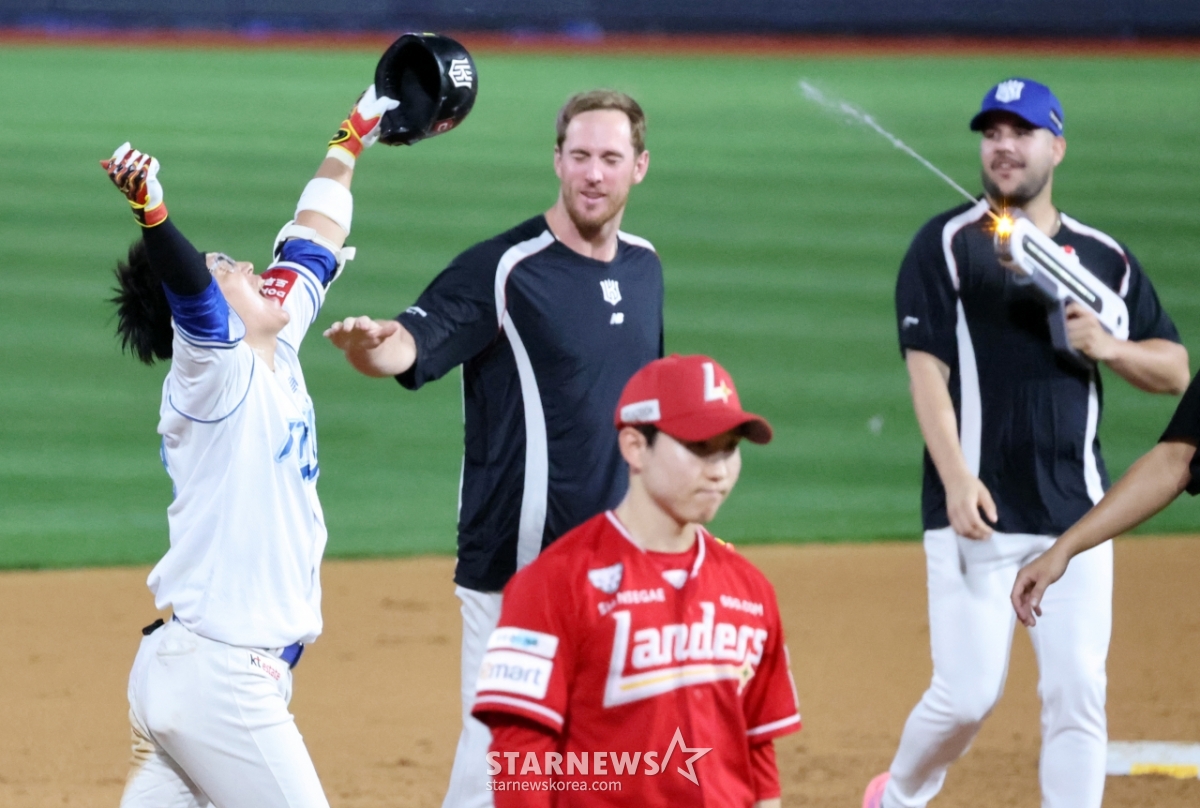 스포츠야구[포토]'악소리나는 순간' 9회말 끝내기 안타 허경민발행 : 2025.08.19 ・ 21:53수원=강영조 선임기자KT 1번타자 허경민이 19일 수원KT위즈파크에 열린 2025KBO리그 KT위즈와 SSG랜더스 경기 9회말 무사 2루에서 끝내기 안타를 터트린 후 동료들과 환호하며 자축하고 있다.2025.08.19.<저작권자 © 스타뉴스, 무단전재 및 재배포 금지>내기허경민위즈안타수원랜더스추천 기사강영조 선임기자기자홈좋아요 스포츠-야구의 인기 급상승 뉴스스포츠-야구의 최신 뉴스