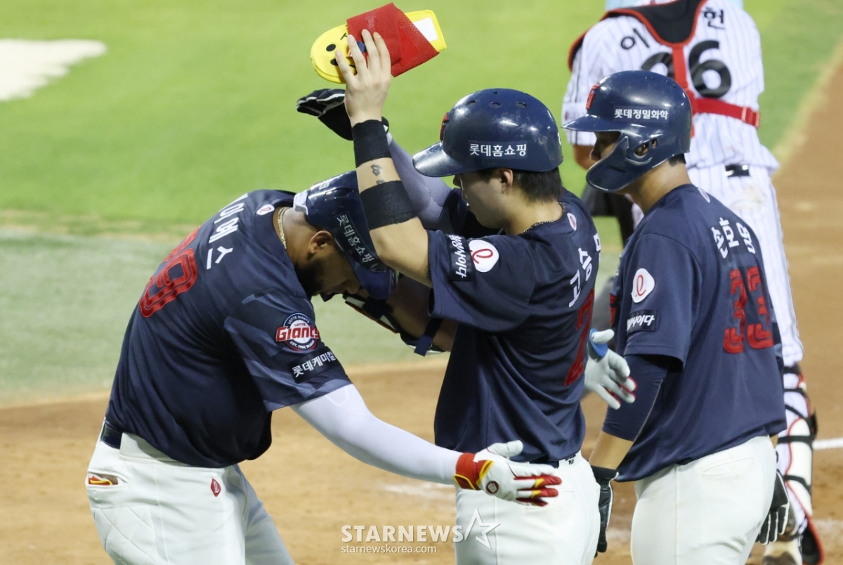 스포츠야구[포토] 레이예스 '이런 구타는 얼마든지'발행 : 2025.08.20 ・ 19:32잠실=김진경 대기자광고삭제2025 신한 SOL Bank KBO리그 LG 트윈스 대 롯데 자이언츠 경기가 20일 서울 잠실야구장에서 열렸다.롯데 레이예스가 3회초 1사 1,2루에서 역전 3점 홈런을 날리고 홈인하고 있다.<저작권자 © 스타뉴스, 무단전재 및 재배포 금지>프로야구KBO시구승요승리요정치어리더추천 기사김진경 대기자기자홈좋아요 스포츠-야구의 인기 급상승 뉴스스포츠-야구의 최신 뉴스
