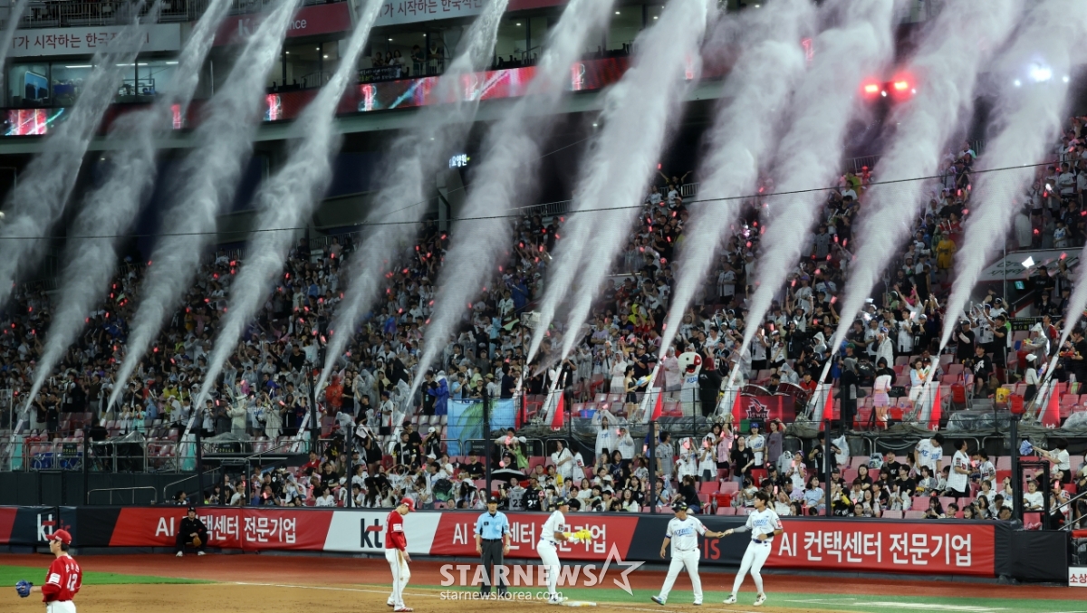 스포츠야구[포토]안타가 터지면 물대포도 터집니다!발행 : 2025.08.20 ・ 20:01수원=강영조 선임기자KT 3번타자 안현민이 20일 수원KT위즈파크에서 열리는 2025 신한 SOL Bank KBO리그 KT위즈와 SSG랜더스 경기 4회말 안타를 터트리자 응원석 물대포도 관중석을 향해 발사되고 있다. 2025.08.20.<저작권자 © 스타뉴스, 무단전재 및 재배포 금지>물대포위즈안타안현민수원랜더스추천 기사강영조 선임기자기자홈좋아요 스포츠-야구의 인기 급상승 뉴스스포츠-야구의 최신 뉴스