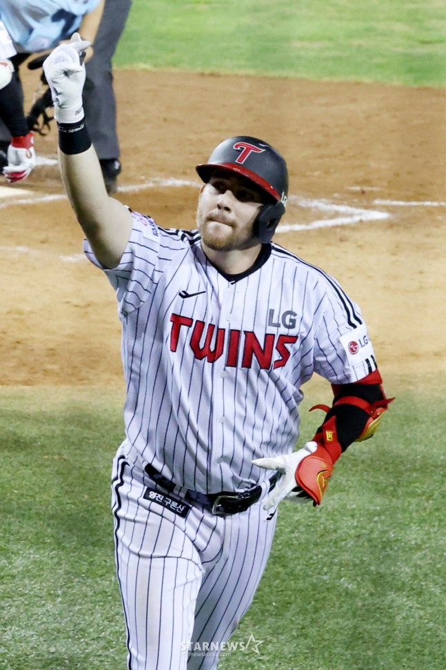 여기서 끝이 아니었다. 뒤이어 문보경이 또 한 번 정현수의 4구째 한가운데 실투를 그대로 잡아당겼고, 좌측 외야 관중석에 그대로 꽂혔다. 비거리 121.2m의 시즌 23호 포로 점수는 6-6 동점이 됐다. 오스틴과 문보경의 연속 타자 홈런은 시즌 23번째로 KBO 통산 1197호였다.