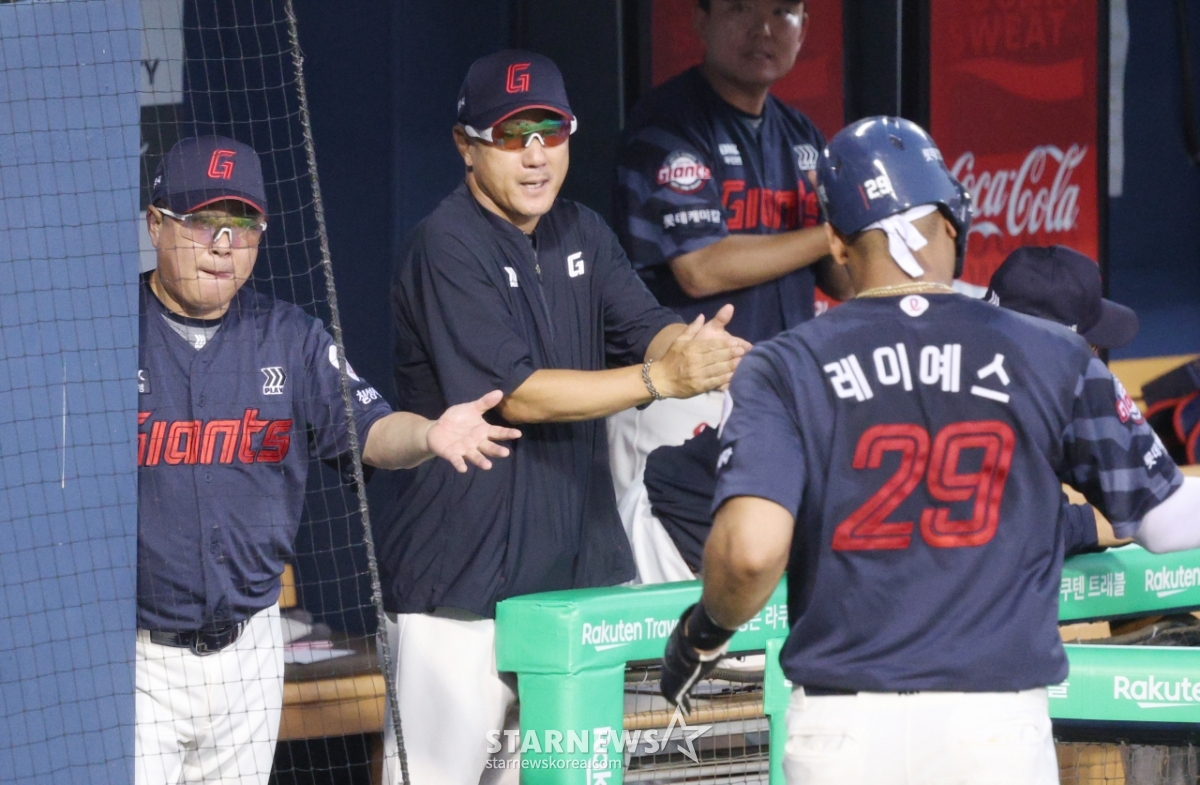 스포츠야구[포토] 혀 빼문 김태형 '레이예스 굿잡'발행 : 2025.08.21 ・ 19:37잠실=김진경 대기자광고삭제2025 신한 SOL Bank KBO리그 LG 트윈스 대 롯데 자이언츠 경기가 21일 서울 잠실야구장에서 열렸다.롯데 3회초 1사 2,3루에서 3루주자 레이예스가 나승엽의 내야땅볼 때 득점한 후 김태형 감독의 환영을 받고 있다.<저작권자 © 스타뉴스, 무단전재 및 재배포 금지>프로야구KBO시구승요승리요정치어리더추천 기사김진경 대기자기자홈좋아요 스포츠-야구의 인기 급상승 뉴스스포츠-야구의 최신 뉴스