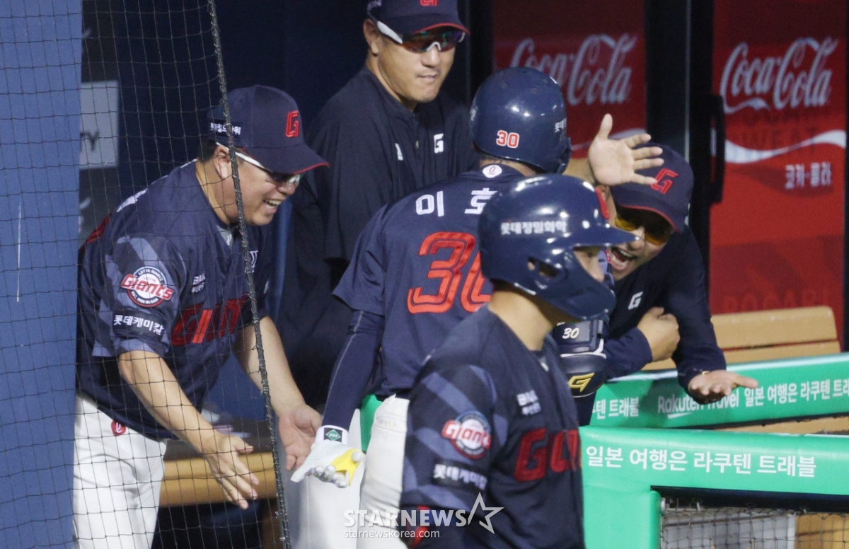 스포츠야구[포토] 김태형 감독, 간만에 아빠미소발행 : 2025.08.21 ・ 19:47잠실=김진경 대기자2025 신한 SOL Bank KBO리그 LG 트윈스 대 롯데 자이언츠 경기가 21일 서울 잠실야구장에서 열렸다.롯데 이호준이 4회초 무사에서 LG 선발 치리노스를 상대로 우월 1점 홈런을 날리고 홈인한 후 김태형 감독의 환영을 받고 있다.<저작권자 © 스타뉴스, 무단전재 및 재배포 금지>프로야구KBO시구승요승리요정치어리더추천 기사김진경 대기자기자홈좋아요 스포츠-야구의 인기 급상승 뉴스스포츠-야구의 최신 뉴스