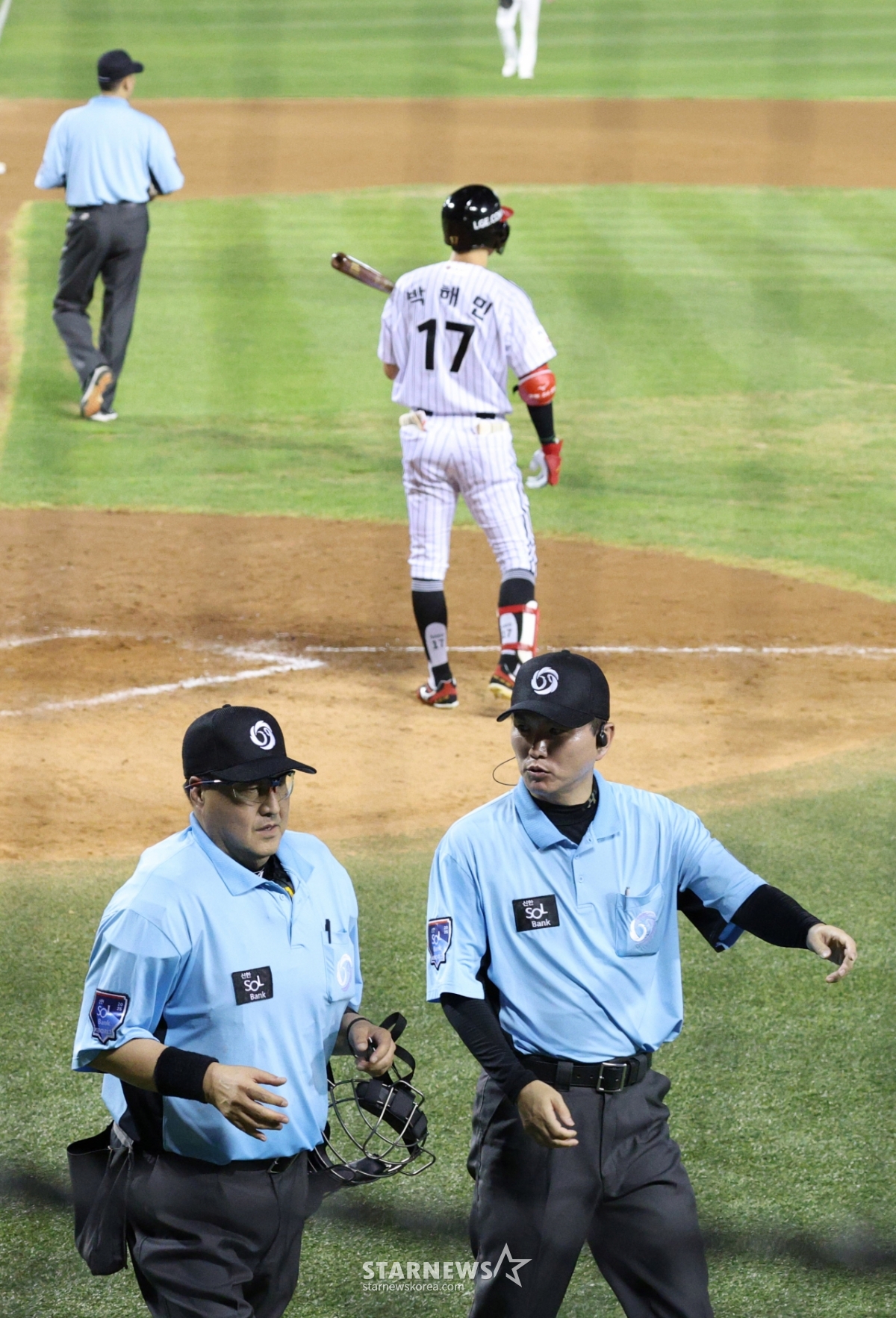 스포츠야구[포토] 박해민 '체크스윙 짚고 가자'발행 : 2025.08.21 ・ 21:23조회수 :잠실=김진경 대기자2025 신한 SOL Bank KBO리그 LG 트윈스 대 롯데 자이언츠 경기가 21일 서울 잠실야구장에서 열렸다.LG 박해민이 7회말 2사 1,2루에서 삼진을 당한 후 체크스윙 판독을 요청한 후 대기하고 있다. 결과는 삼진.<저작권자 © 스타뉴스, 무단전재 및 재배포 금지>브리핑추천 기사김진경 대기자기자홈좋아요스포츠-야구의 인기 급상승 뉴스스포츠-야구의 최신 뉴스AD