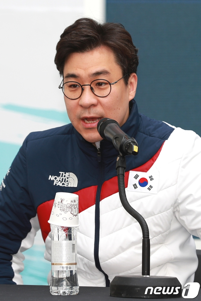 2018 평창올림픽 쇼트트랙 남자 선수단 기자회견에서 취재진의 질문에 답하고 있는 김선태 감독의 모습. /사진-뉴스1