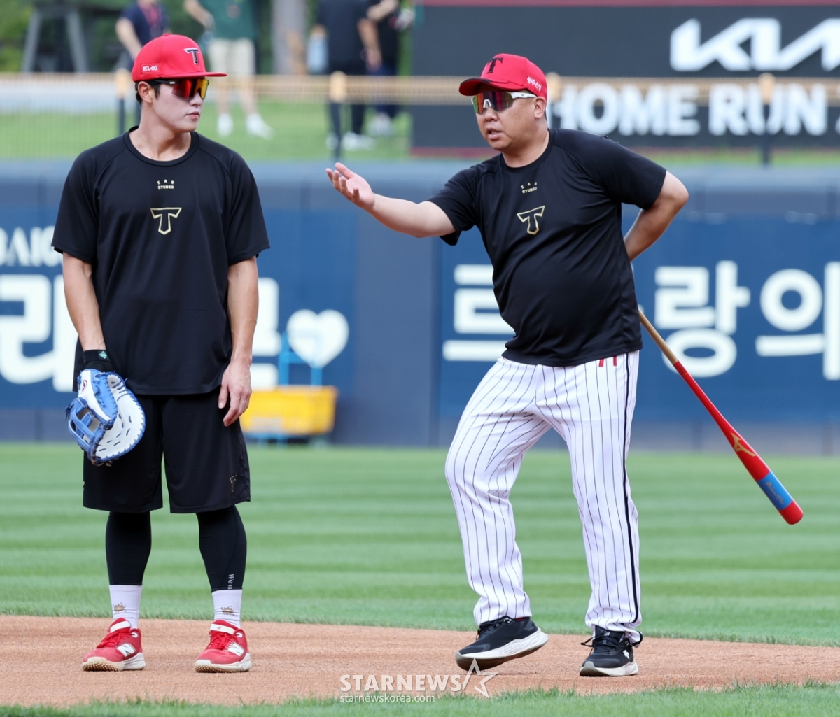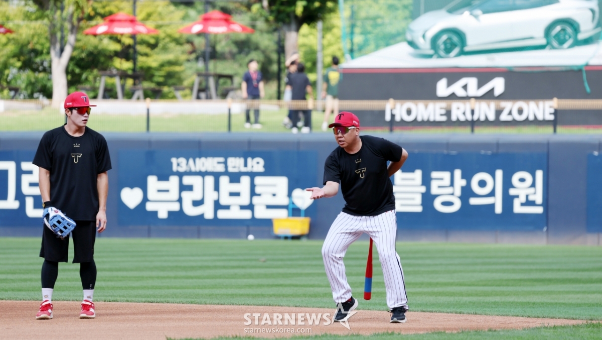 스포츠야구[한번에쓱]'잘 키우고 싶은 오선우' 수비 집중 지도하는 KIA 이범호 감독발행 : 2025.08.22 ・ 16:09수정 : 2025.08.22 ・ 18:59광주=강영조 선임기자KIA 이범호 감독이 뙤약볕이 내리쬐는 22일 광주KIA챔피언스필드에서 LG트윈스와 KIA타이거즈의 경기를 앞두고 1루수 오선우의 수비를 집중지도해 눈길을 끌고 있다. 2025.08.22.<저작권자 © 스타뉴스, 무단전재 및 재배포 금지>이범호KIA선우수비집중지도추천 기사강영조 선임기자기자홈좋아요 스포츠-야구의 인기 급상승 뉴스스포츠-야구의 최신 뉴스