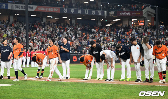 한화 이글스가 22일 대전 한화생명볼파크에서 열린 SSG 랜더스와 2025 신한 SOL뱅크 KBO리그 홈경기에서 연장 11회 승부 끝에 0-1로 졌다.
