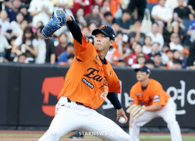 3회에 첫 실점이 나왔다. 선두 타자 심우준에게 안타를 맞았고 2사 2루에서 문현빈의 우전 안타로 선취점을 내줬다.