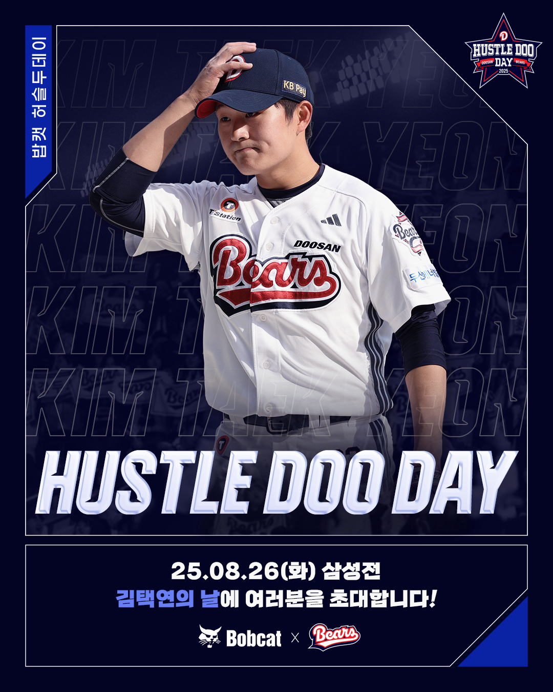 두산 베어스가 오는 26일 오후 6시 30분 서울 잠실야구장에서 열리는 삼성 라이온즈와 정규시즌 맞대결에서 '김택연 밥캣허슬두데이' 행사를 진행한다.